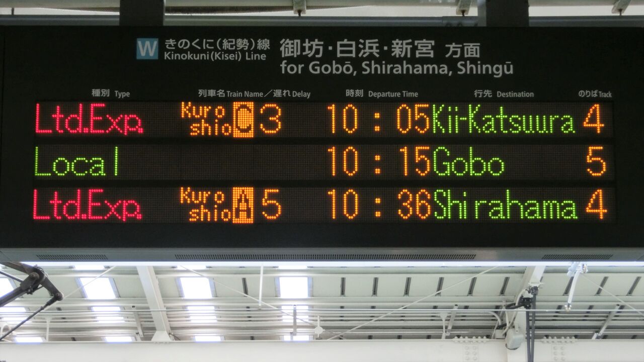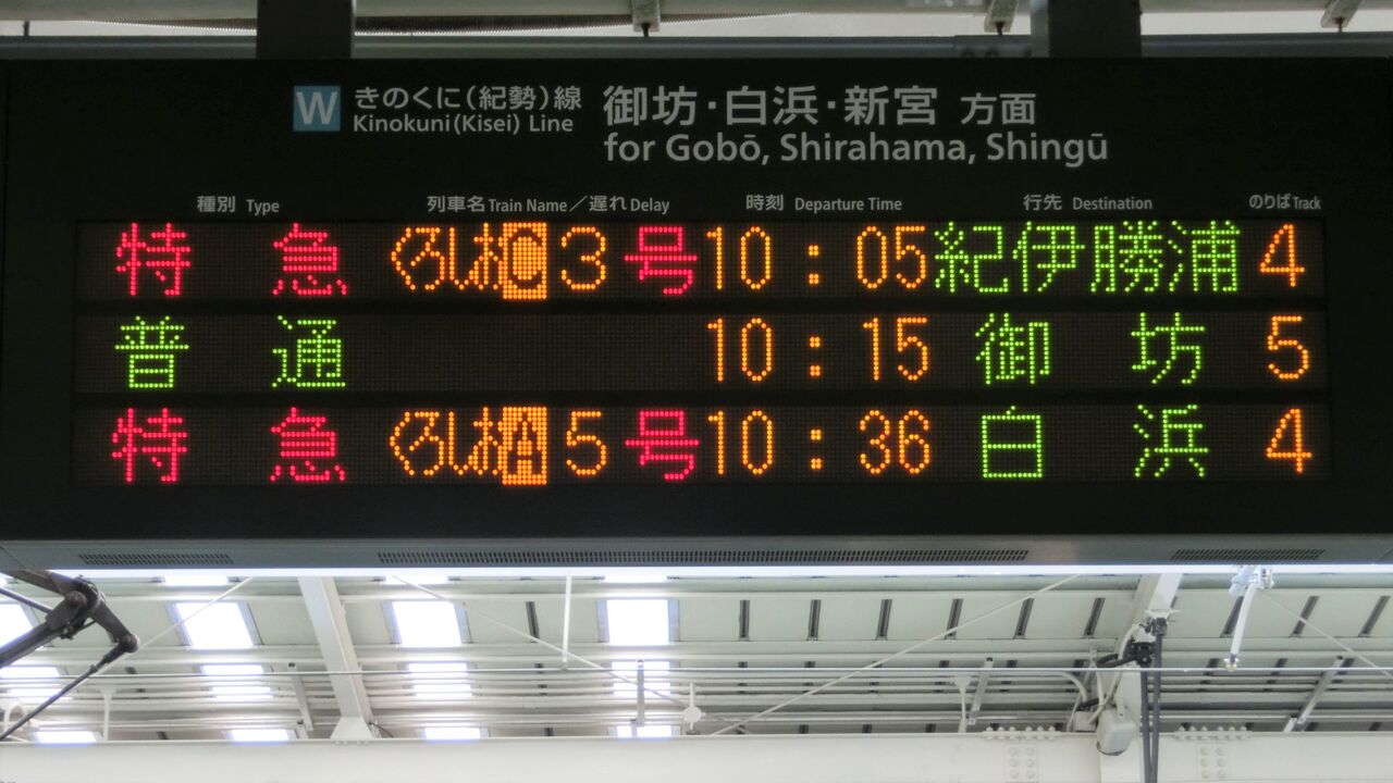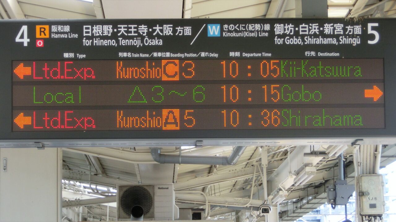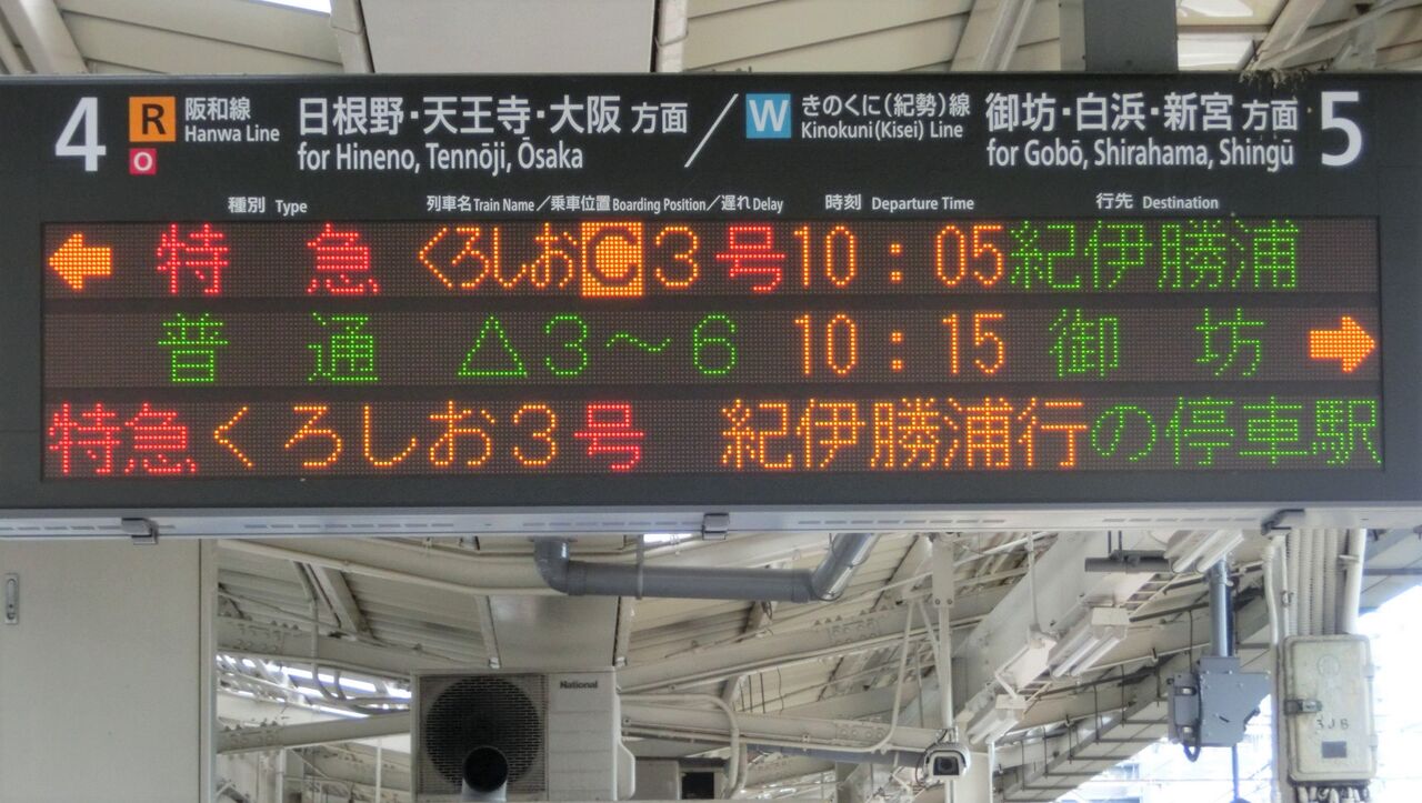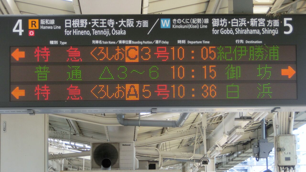 そこで今回、新大阪駅・天王寺駅・和歌山駅と きのくに線の特急停車駅で発車標の表示を撮影してきました。