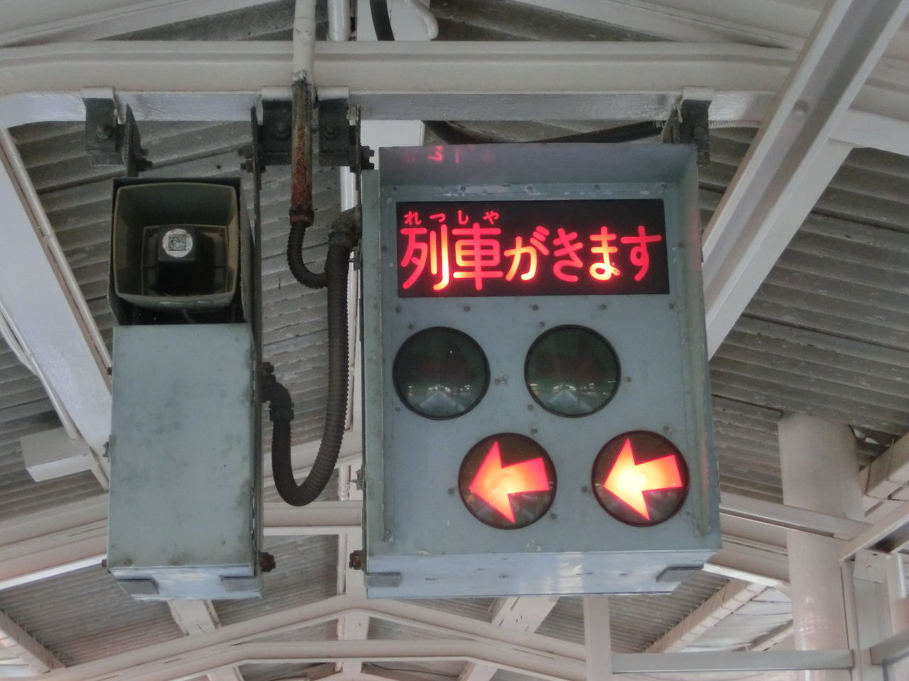 列車が到着・通過する時、上の接近表示器からは 「アニーローリー」 や 「かっこう」 などのメロディが流れ、下の接近表示器からは 踏切音が鳴ります。