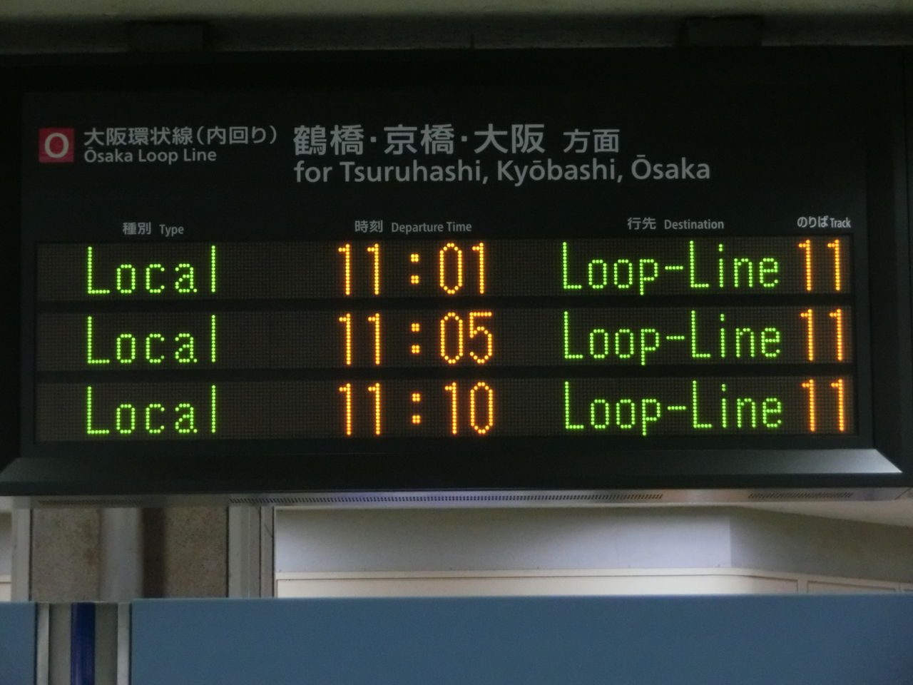 新旧比較しようと思ったのですが、阪和線の発車案内を除いて、路線記号導入前の電光掲示板の写真を ほとんど撮っていなかったので、今回は 導入後の写真のみ紹介します。