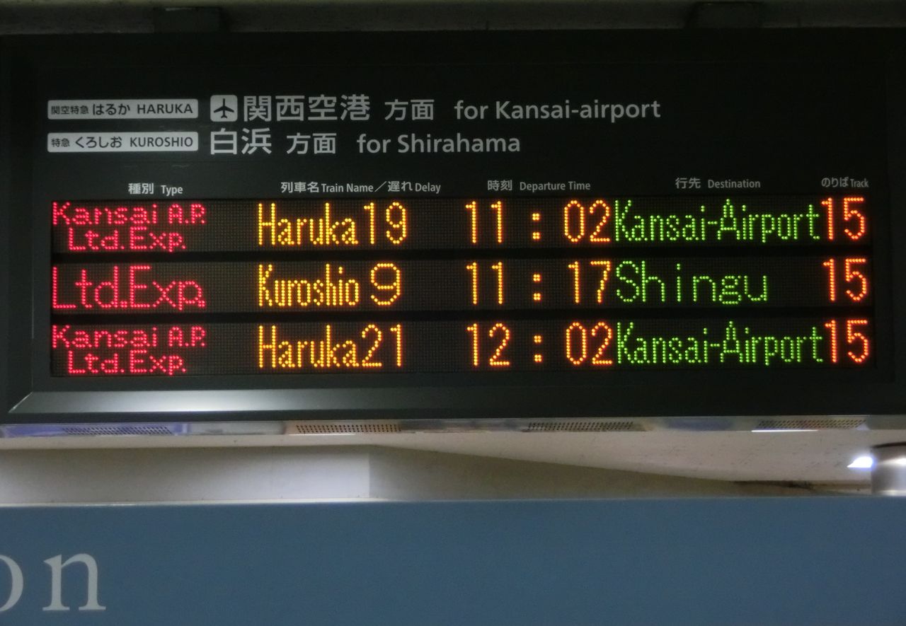 天王寺駅 「特急はるか 京都方面 米原行き」 の英語表示を撮る