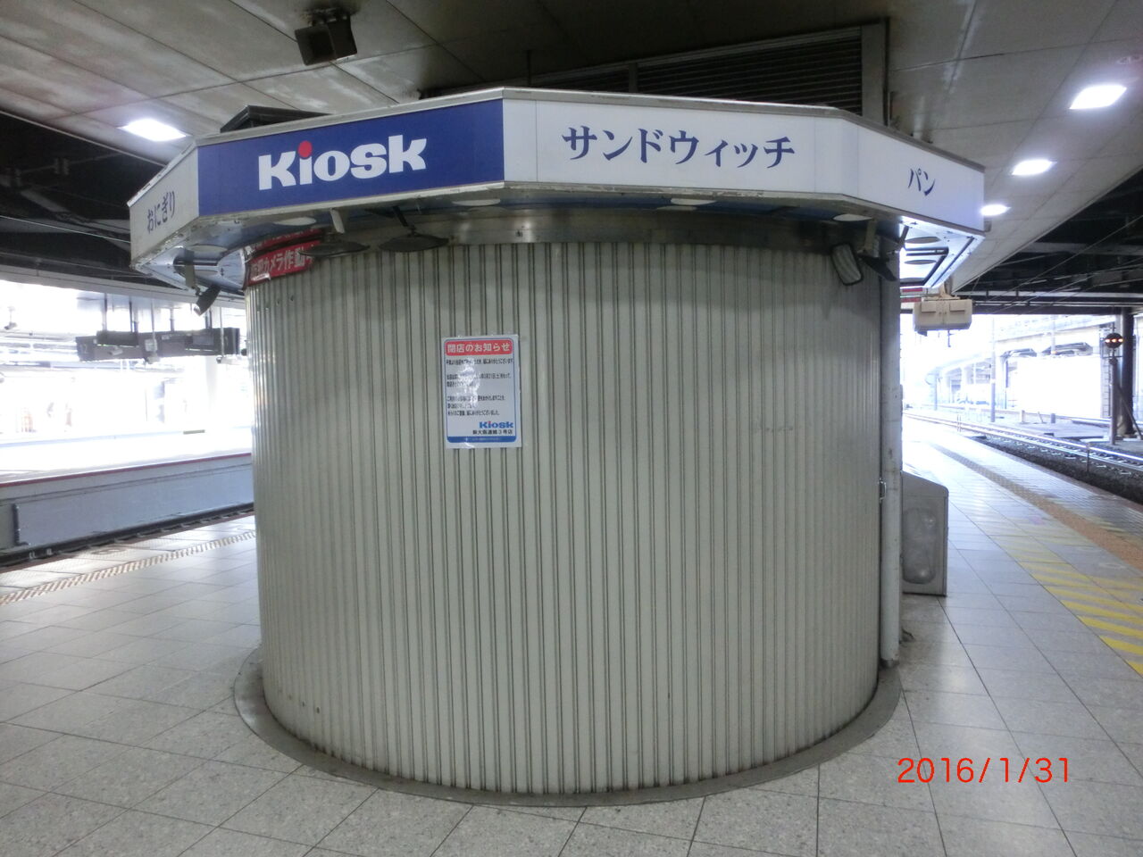 ホームにあったキオスクは、昨年(2015年)3月21日をもって閉店していました。