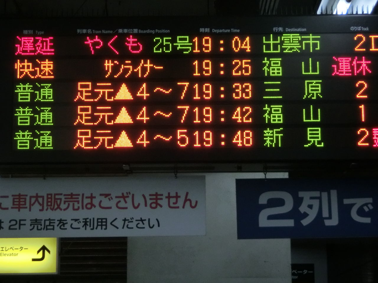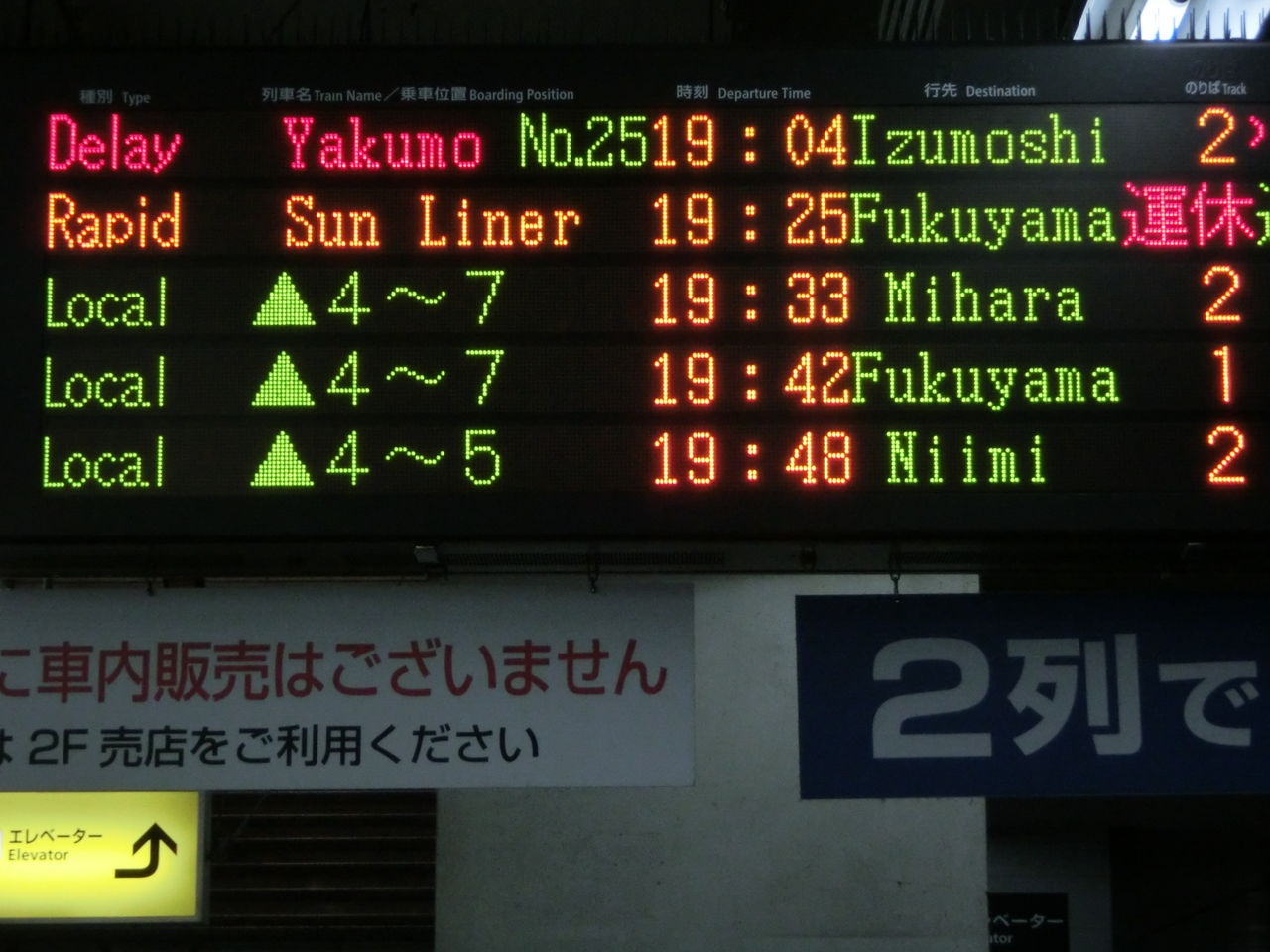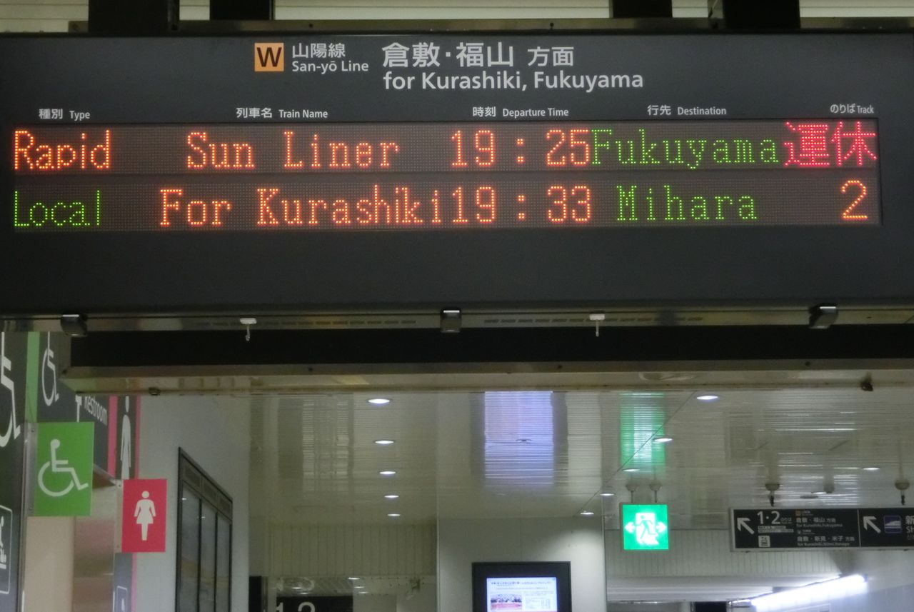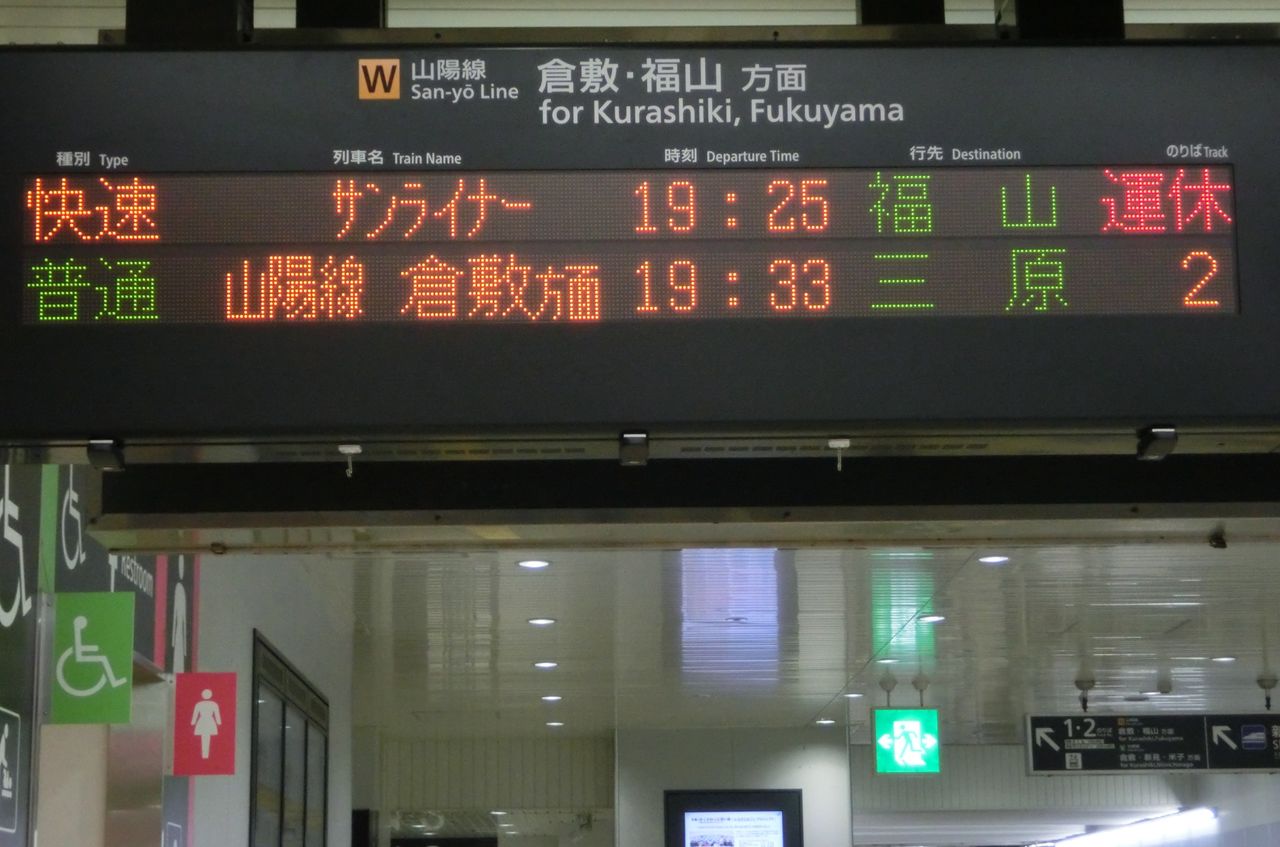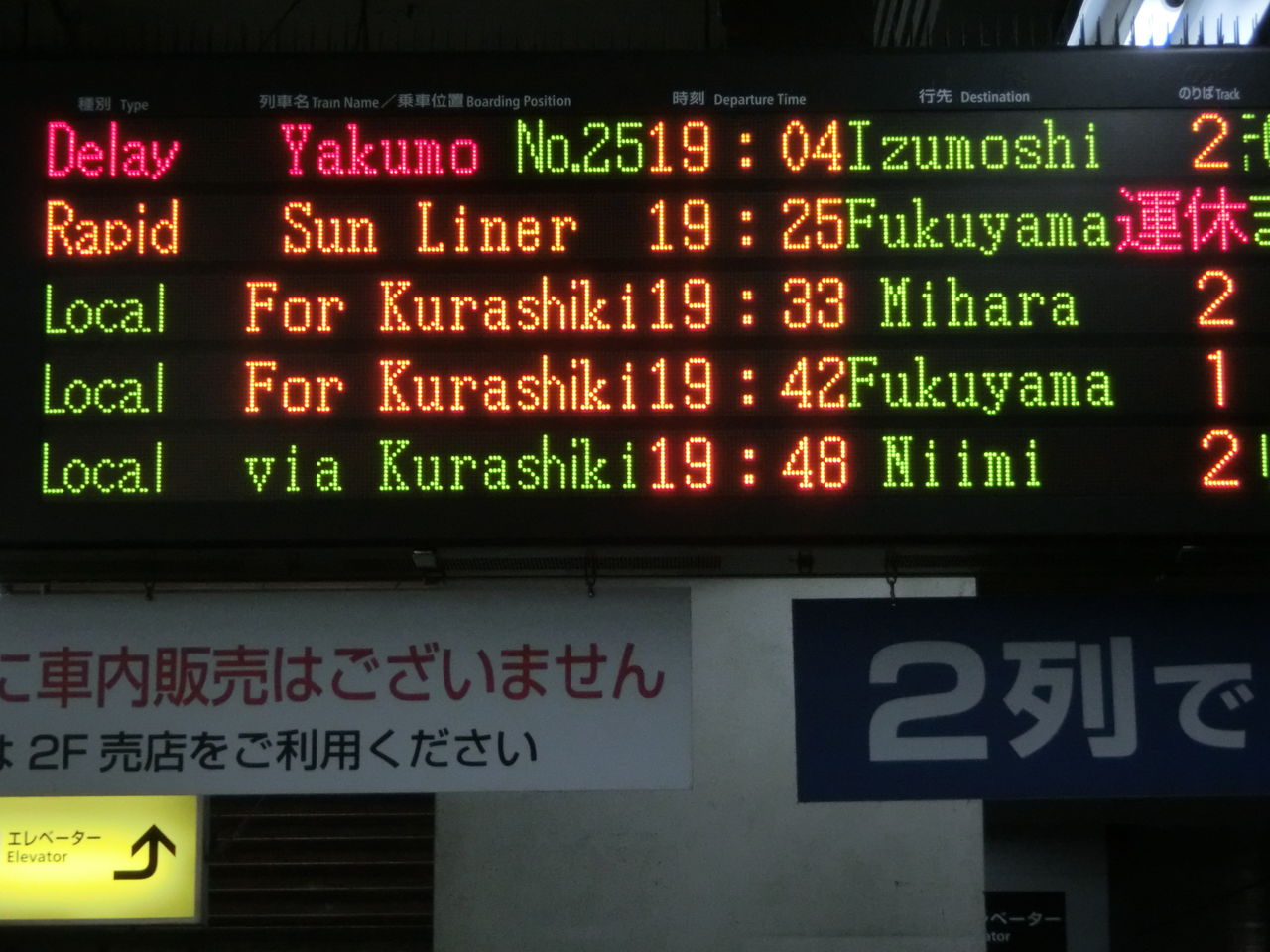ということで、気を取り直して 途中 倉敷駅で発車標の表示を撮ることにしました。
