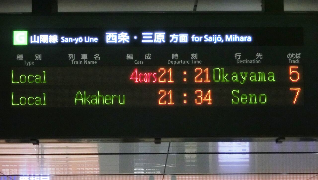 今後は 横川駅や五日市駅、海田市駅、矢野駅など、他の駅の赤ヘル号表示も撮りたいと思います。