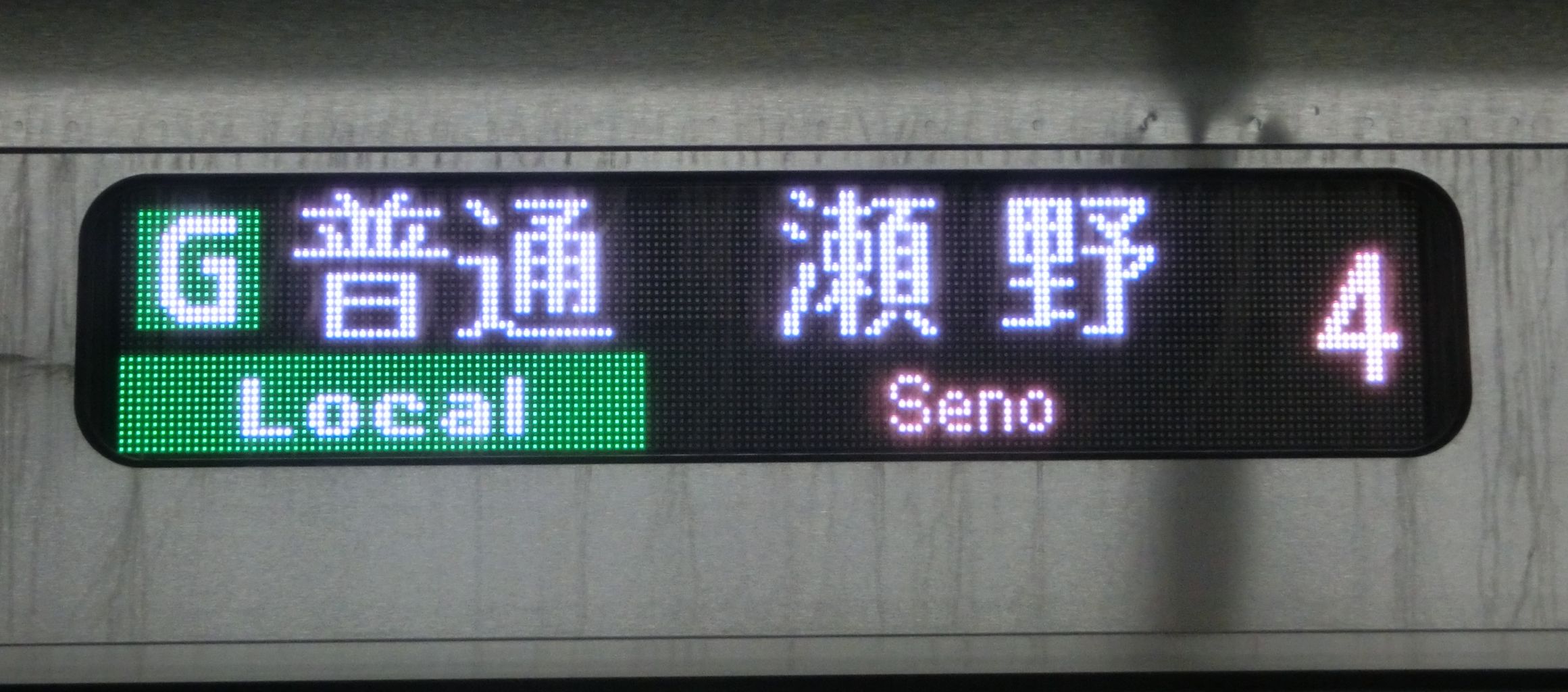 こちらは、山陽線上り 瀬野行きの赤ヘル号表示です。(赤ヘル号の両数表示は撮影せず)
