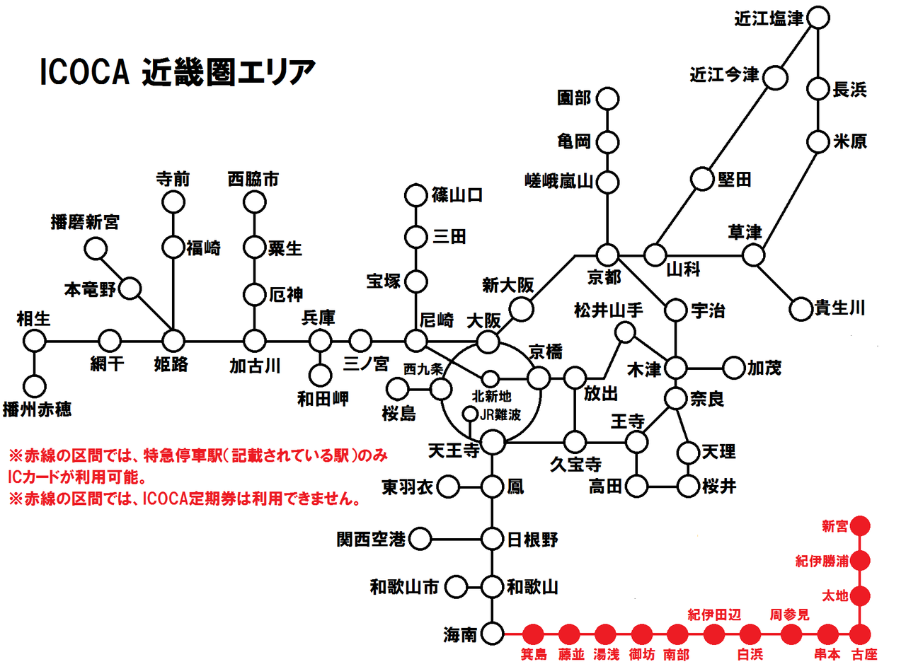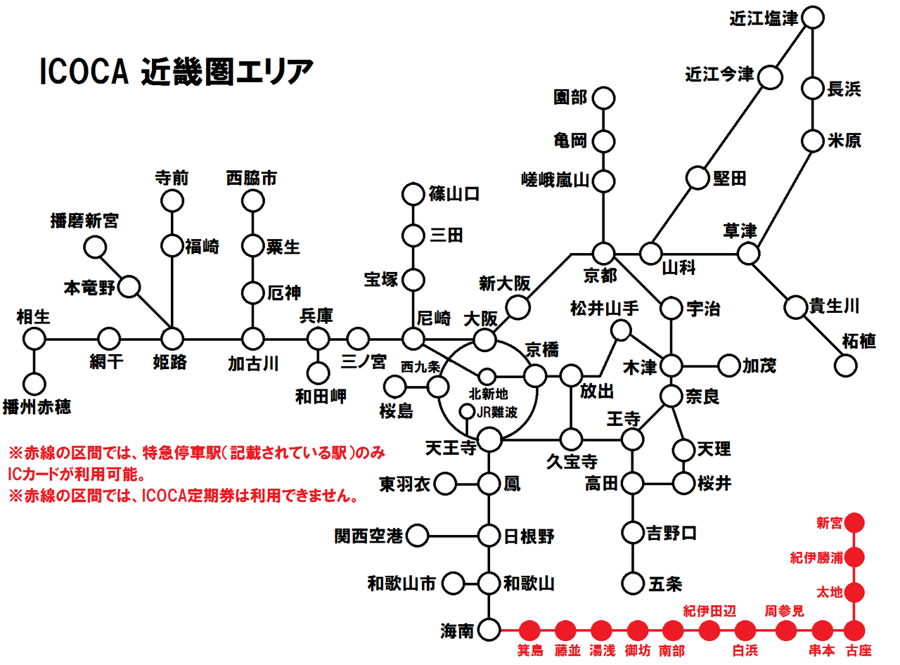 ※きのくに線 海南~新宮間の特急通過駅は ICカードが使えません。