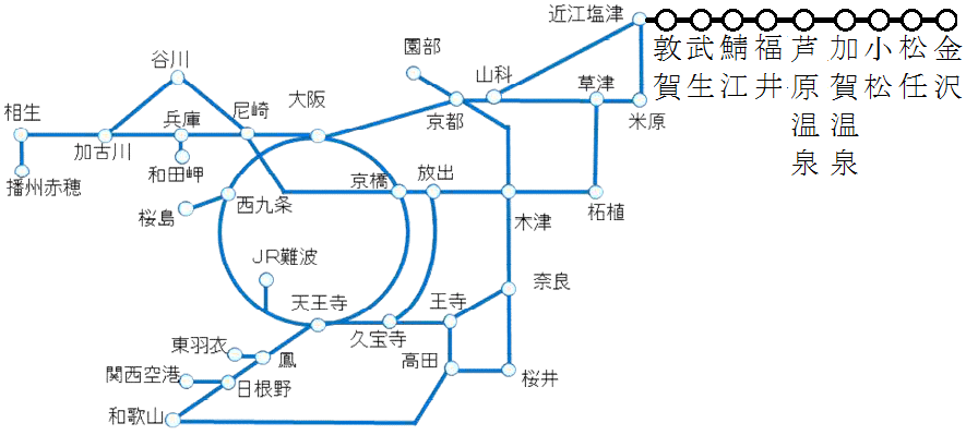 この図に 大聖寺駅(米原行きの 「しらさぎ」 が1日に2本停車)を追加しました。