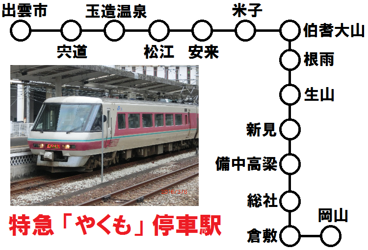 【乗車駅と下車駅が どちらも特急 「やくも」 停車駅である場合】