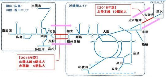 こうして 3つのエリアがつながるのに合わせて ICOCAエリアが一体化され、岡山⇔姫路 や 京都⇔金沢といった 「エリア跨ぎ」 が可能になるのです。
