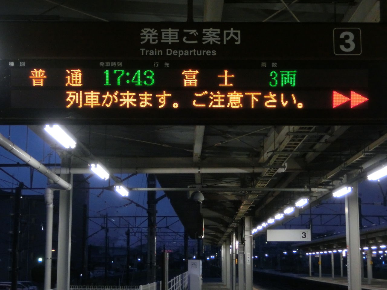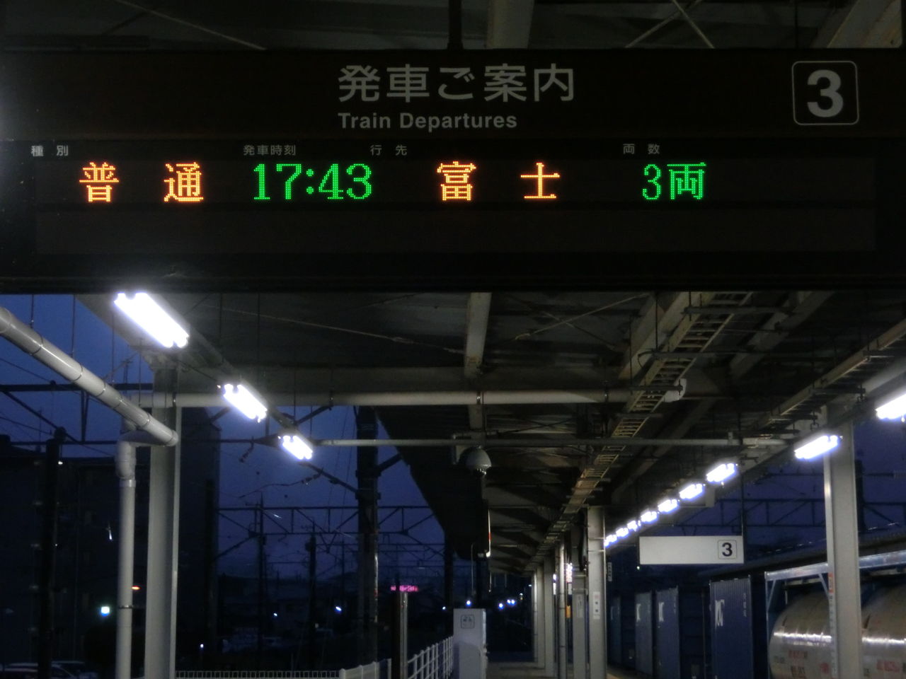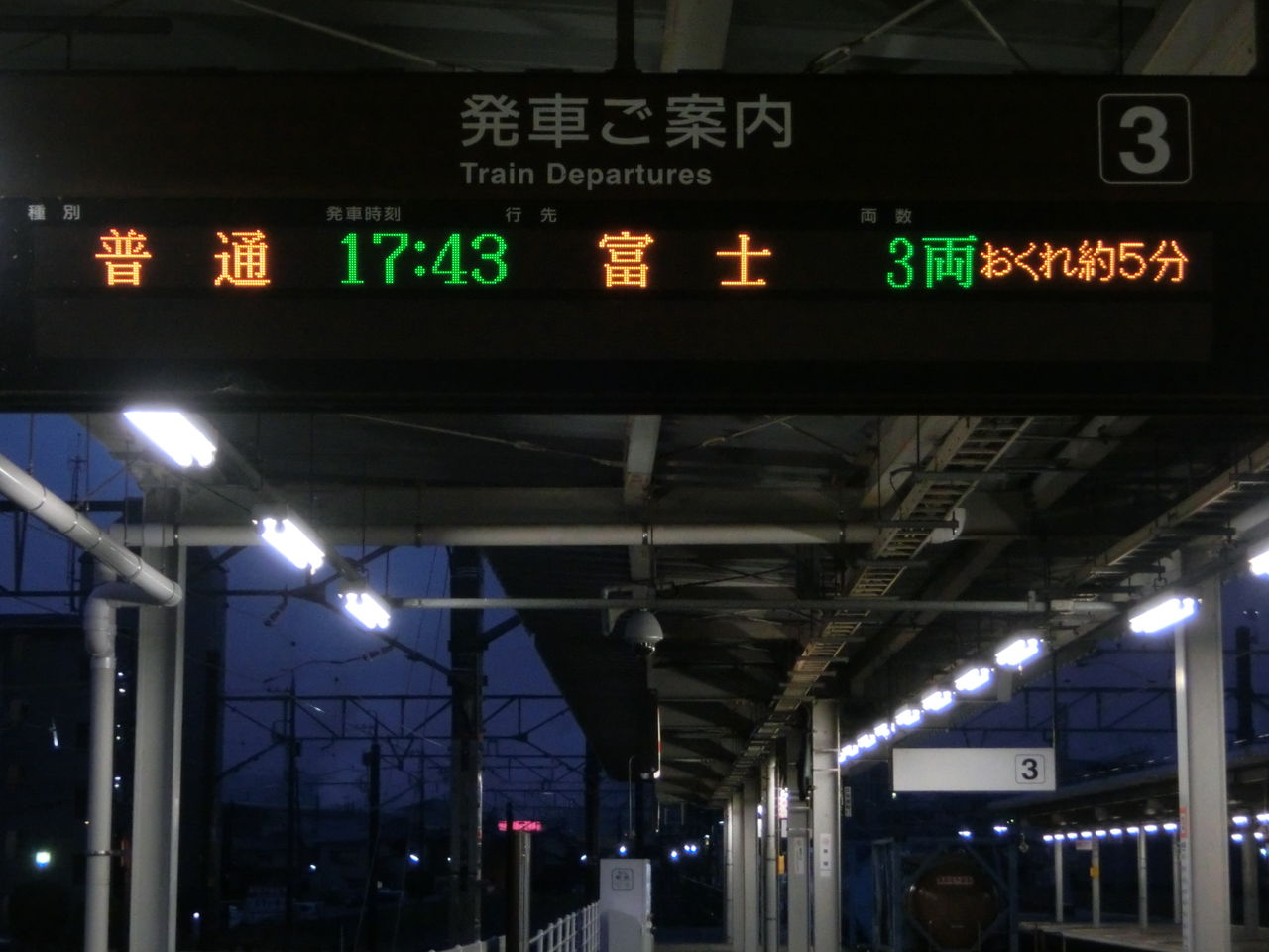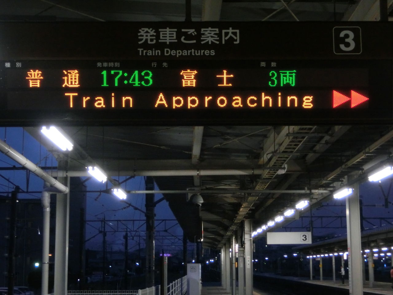 その目的は、ホームに設置されている発車標(発車標)の 「富士行き」 の表示を撮るため。