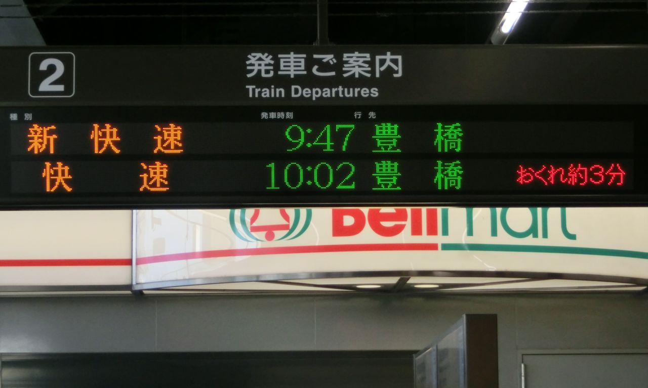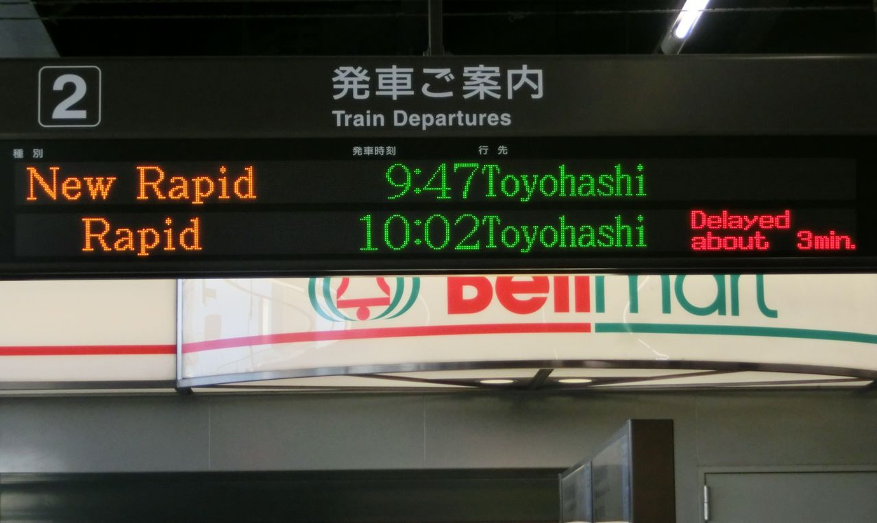 発車標の右端の狭いスペースに遅れ表示が出るとは、思いもしなかったです。