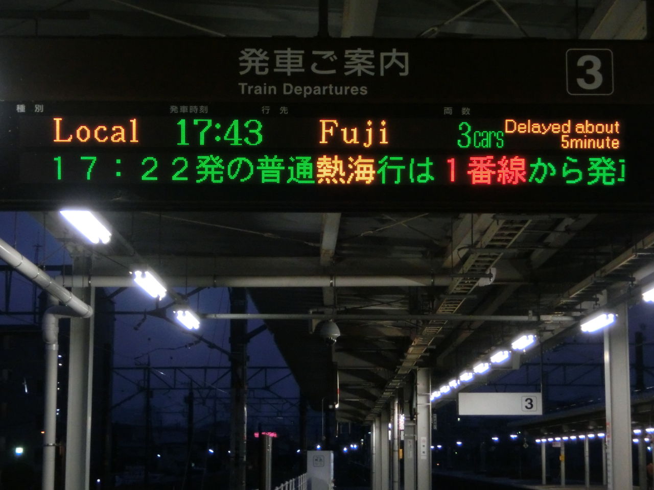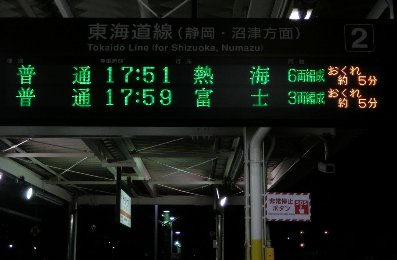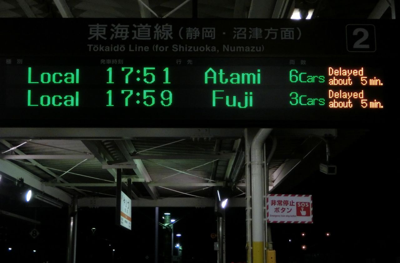 あとになって知ったのですが、この日は 16時50分頃、清水駅付近にある踏切の遮断棒が折れて安全装置が作動し、現場の確認を行ったため、静岡〜富士駅間で40分近く運転を見合わせたようです。