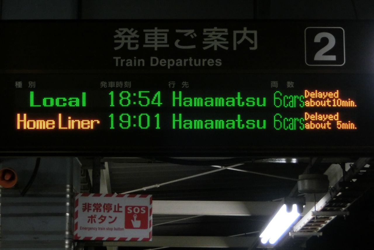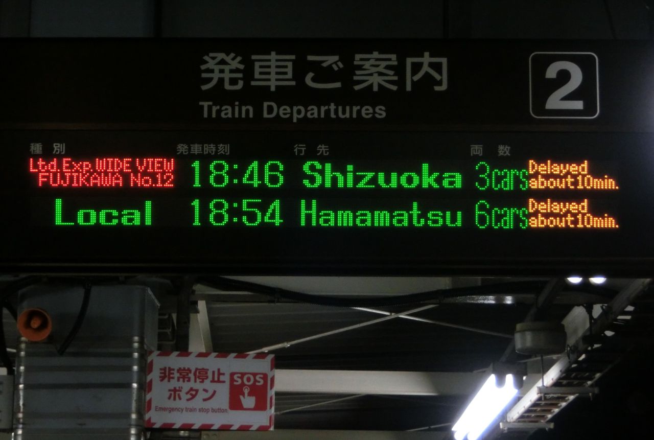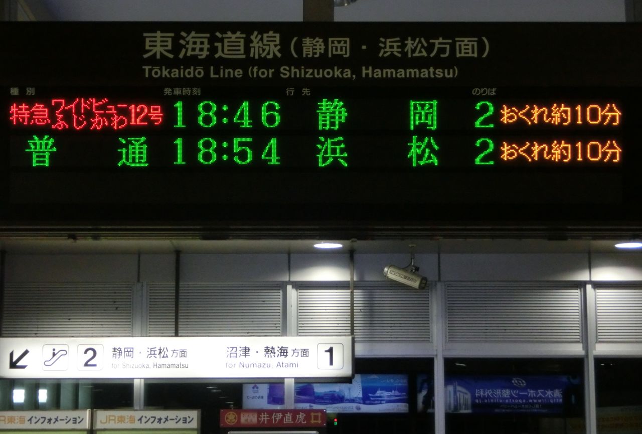 さっきは12分遅れても出てなかったので、てっきり 静岡駅では遅れ表示が出ないと思ってましたが、ちゃんと出るんですね。