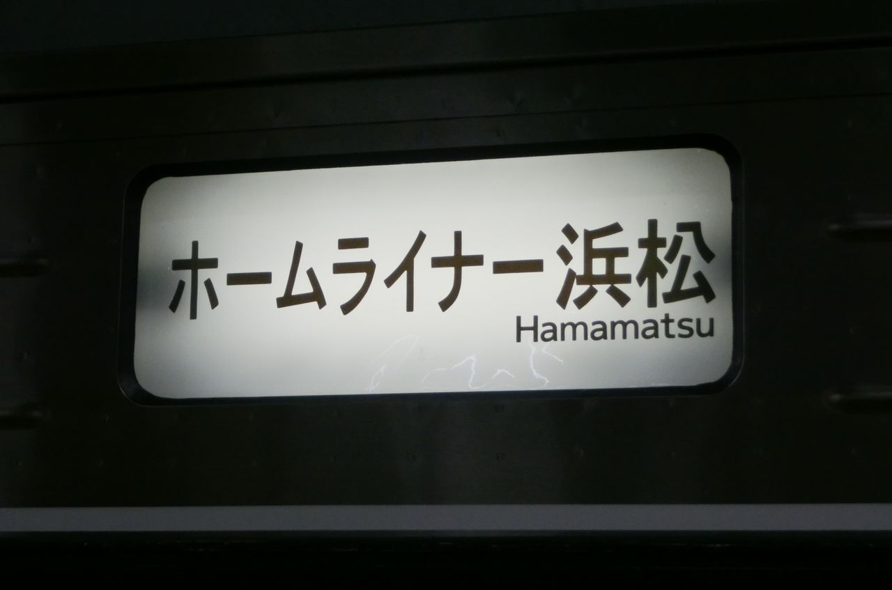 側面の種別幕は こんな感じ。 英語表記は 「Hamamatsu」 だけでした。