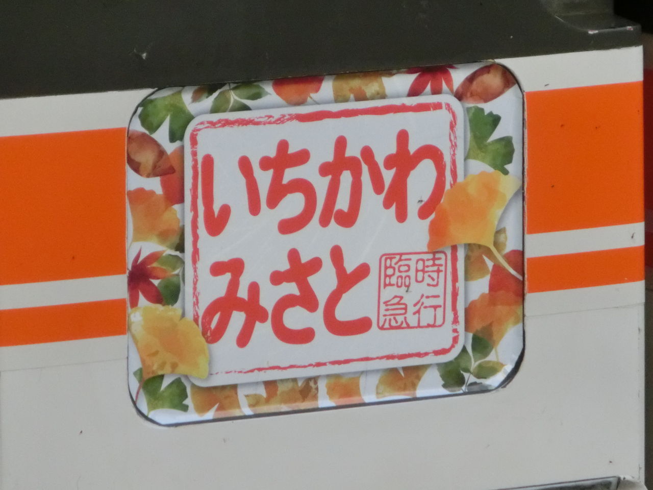 「いちかわみさと」 号のヘッドマークを拡大して撮影。