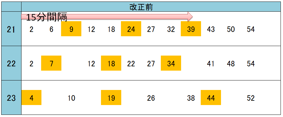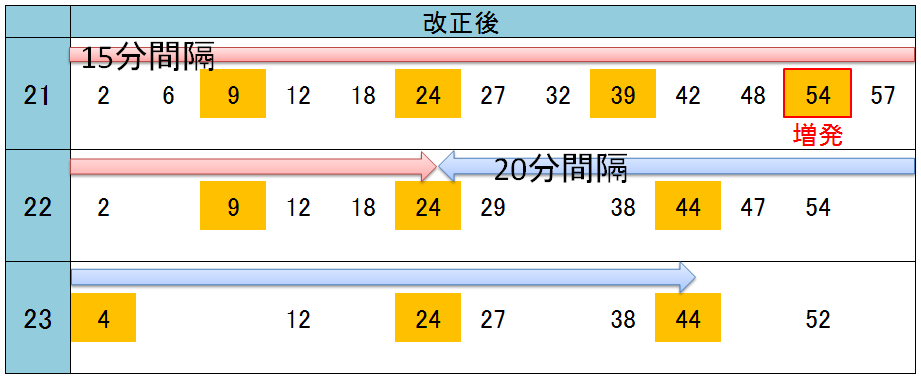 15分間隔での運転を22時台前半まで拡大!