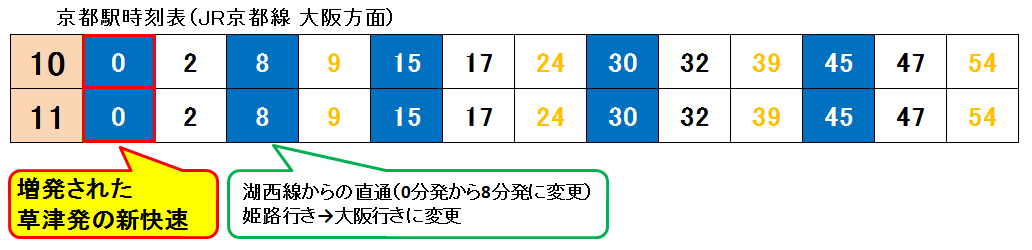 個人的には、日中の湖西線の新快速を全て大阪駅始発・終着にして、琵琶湖線の歯抜けを完全になくしてほしいところ。