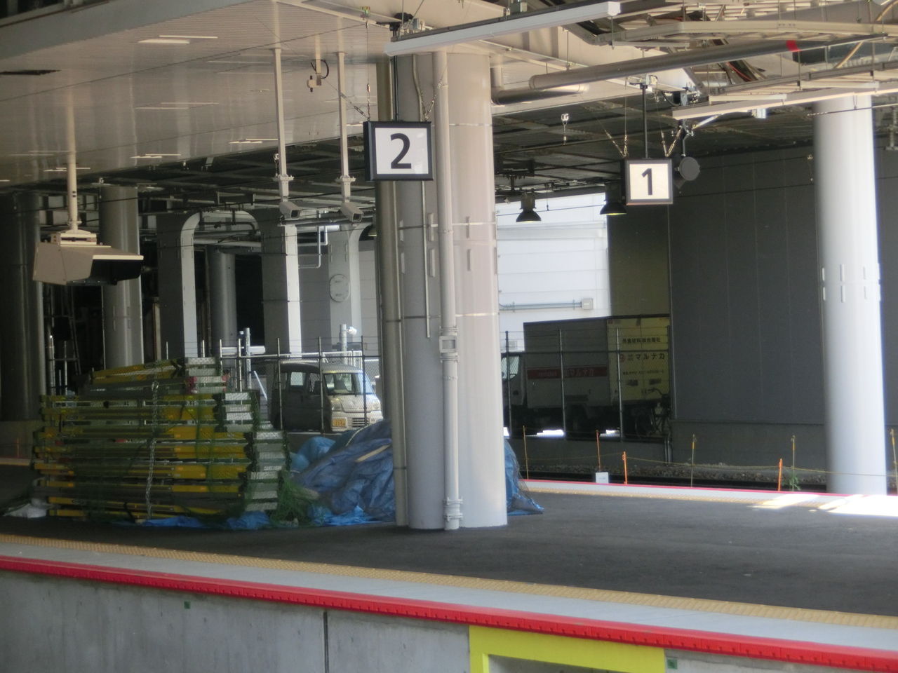 旧11・12番のりばは ホーム有効長が12両以上ありましたが、1・2番のりばは 9両編成以下の列車しか発着しないため、改装工事でホームが短くなりました。