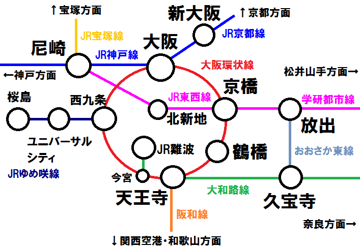 ① 大阪駅⇔天王寺駅は 「鶴橋駅経由」 で!