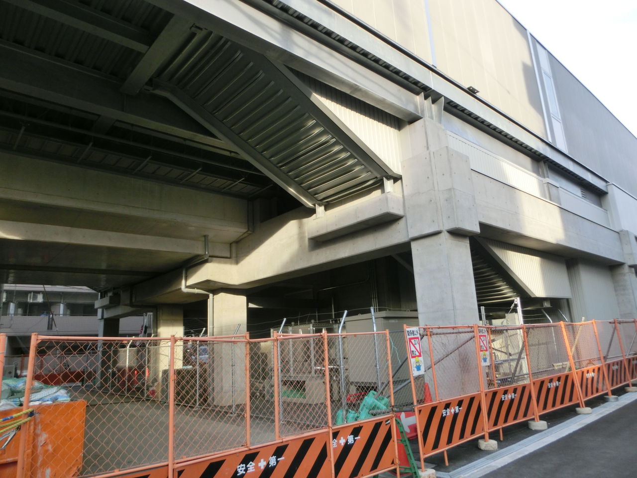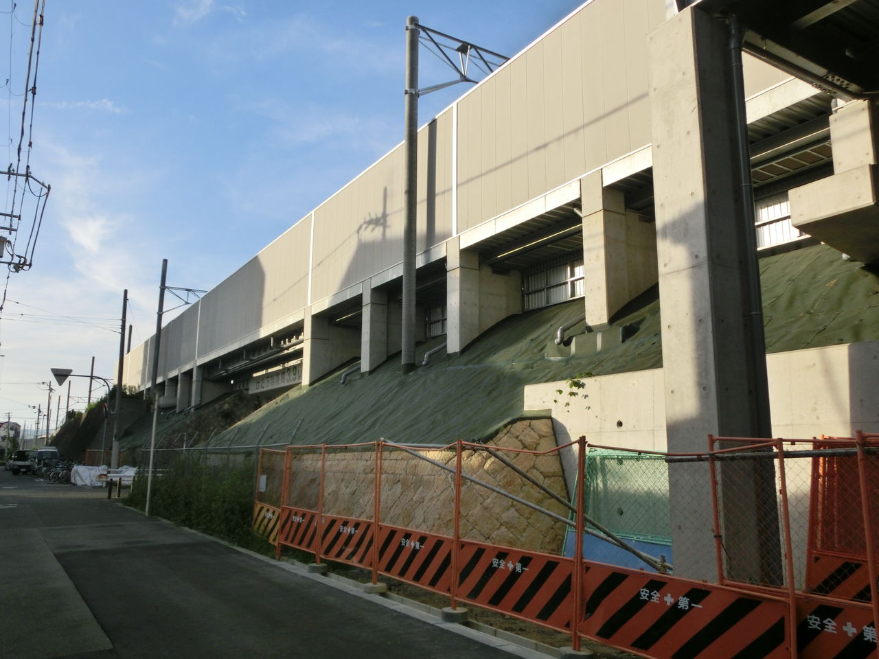 道路を渡って JR都島駅の方向を撮影。 新大阪方面のホームが出来あがってます!