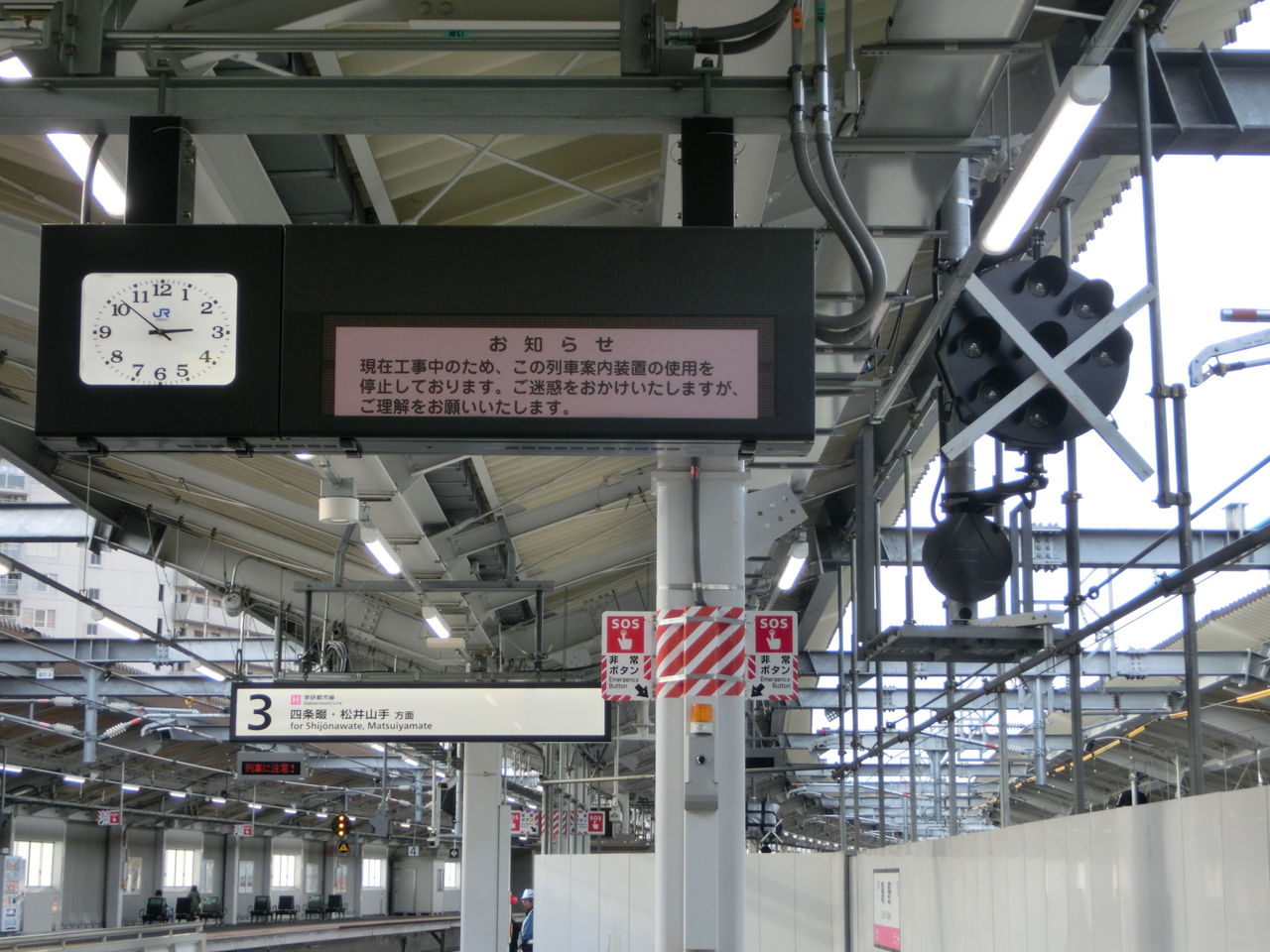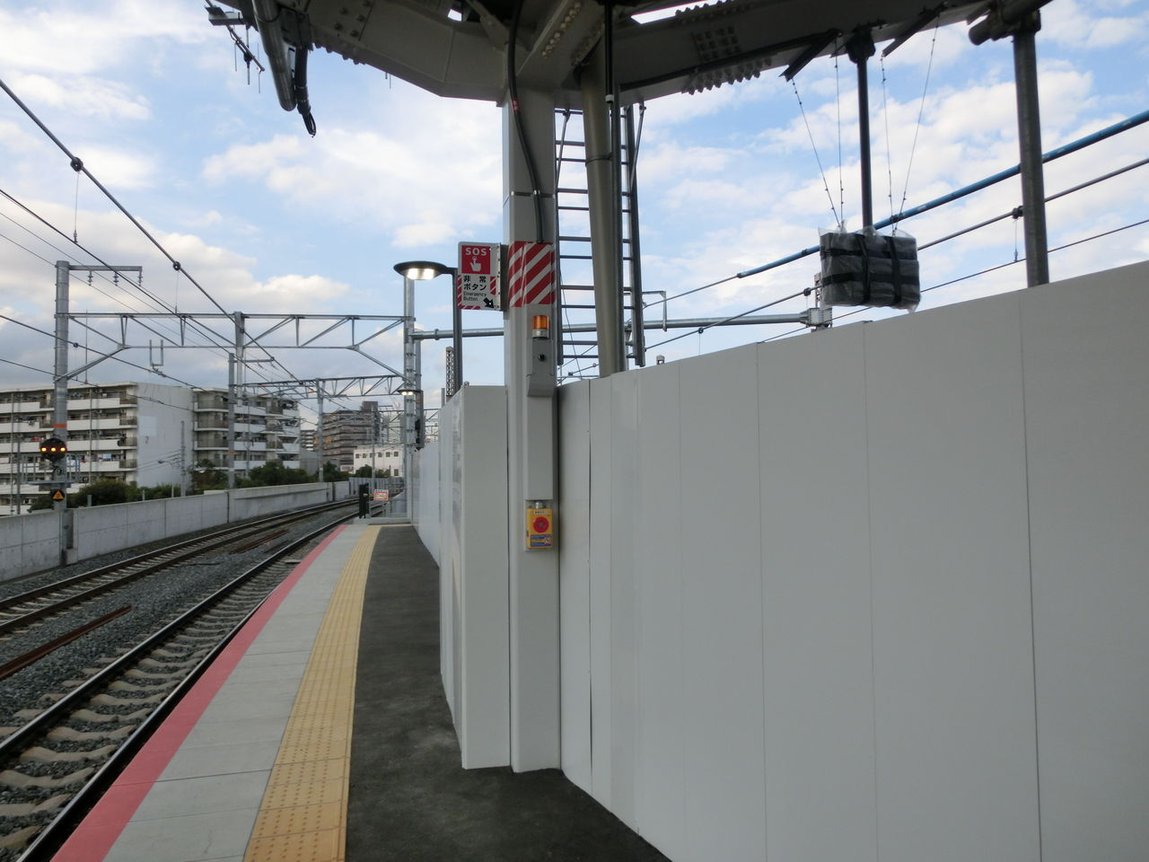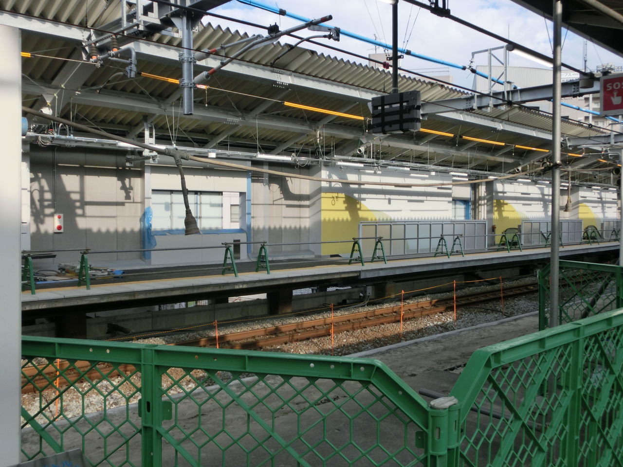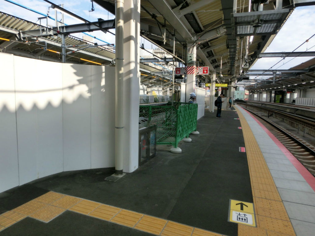 ホームの2番のりば側に 仮設の白い壁が設置されているのは、前回と変わらず。