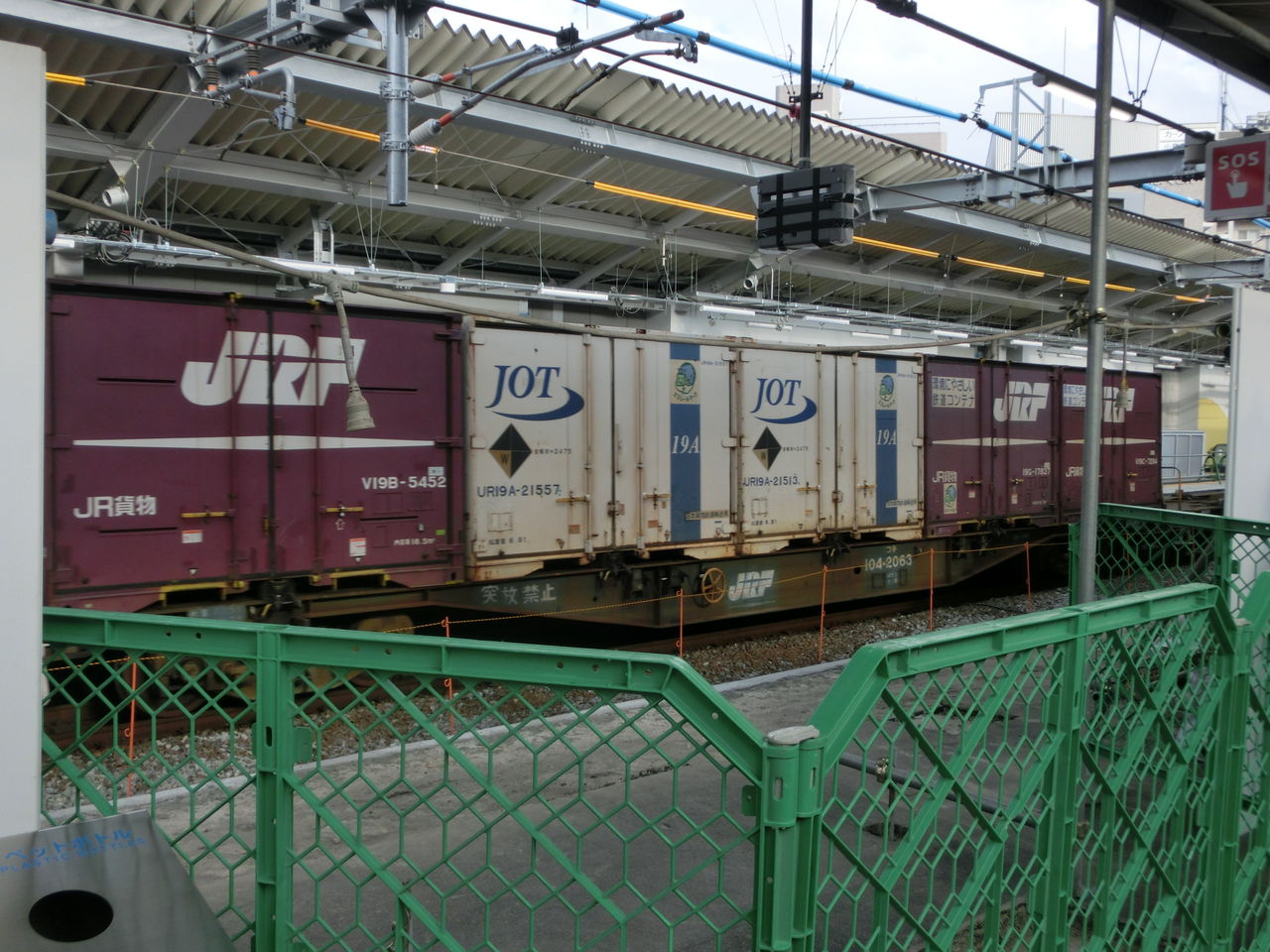 1番のりばを貨物列車が通過していきました。
