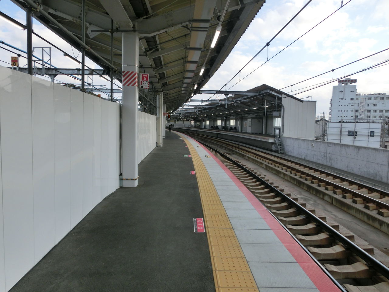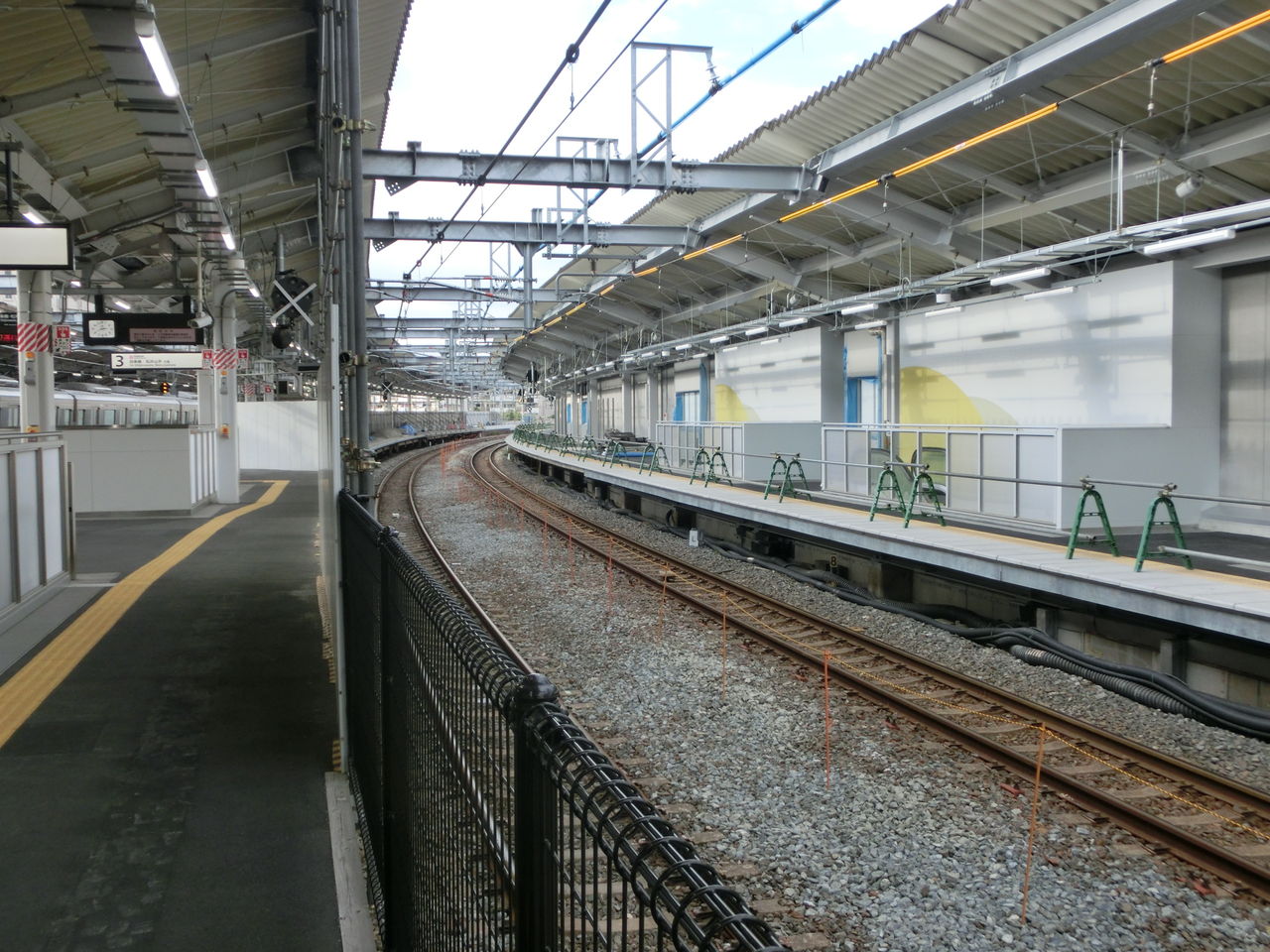 3番のりばのホーム西側の様子です。 2番のりば側に 仮設の白い壁が設置されています。