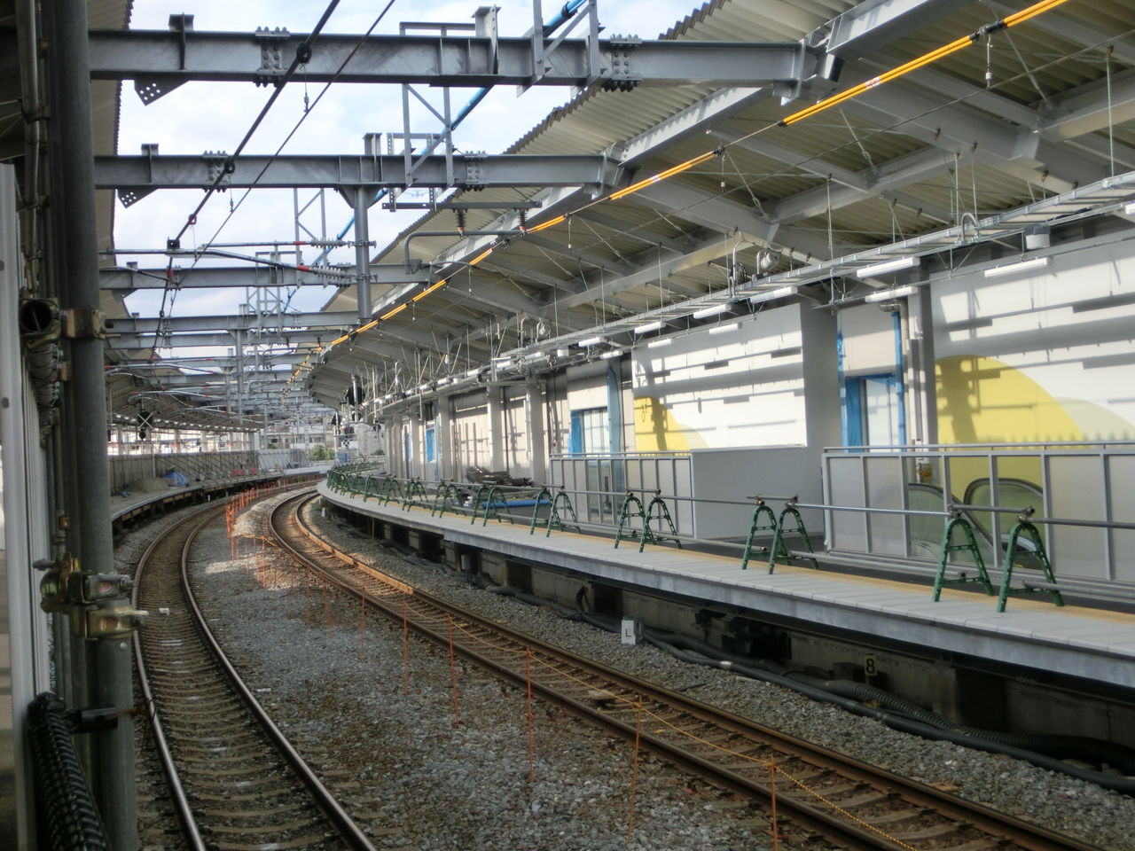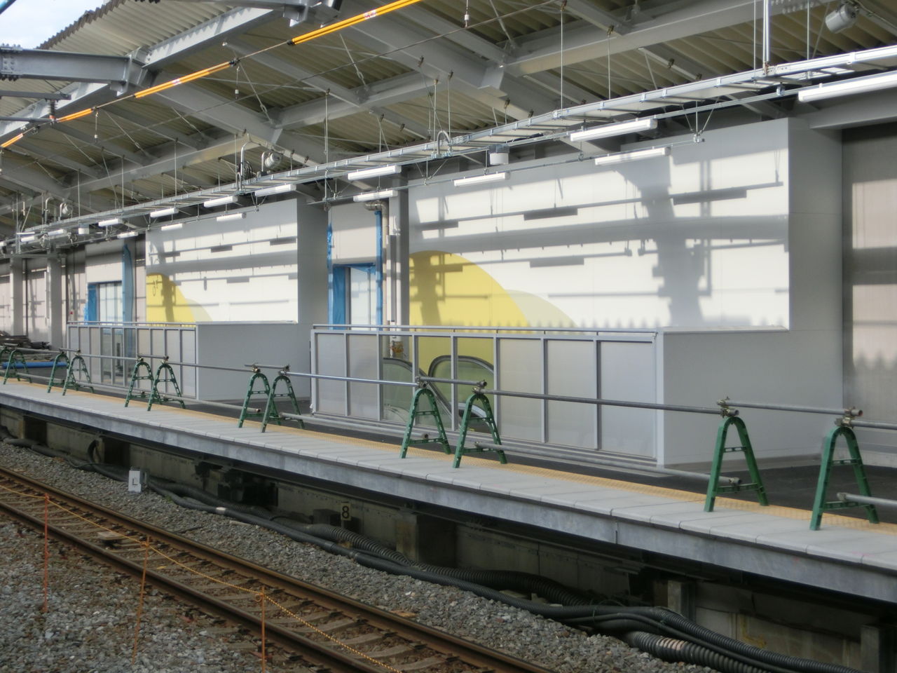 前回の撮影時、ホーム中程に 屋根板がまだ取り付けられていないところがありましたが、今回訪れると、屋根板の取り付けが完了していました。