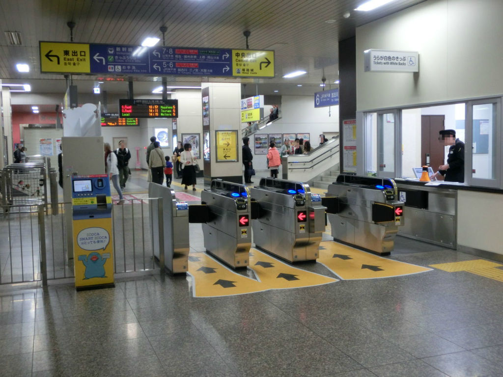 自動改札機がずらりと並び、一番端に 駅員のいる有人改札があったり・・・