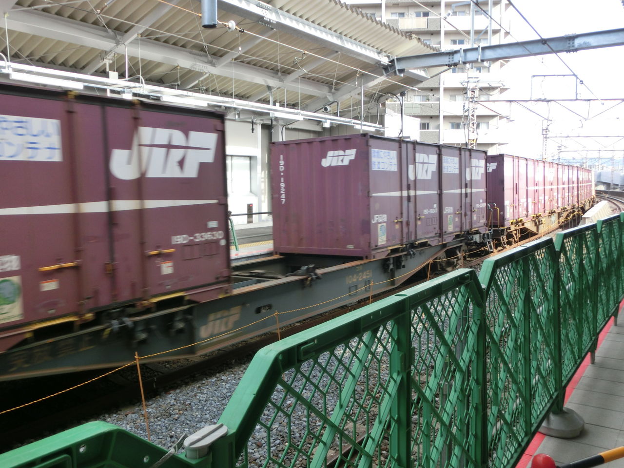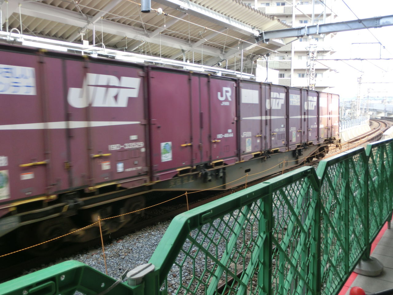 城東貨物線を通る貨物列車は、上下線共に 1番のりばの線路を走行しています。