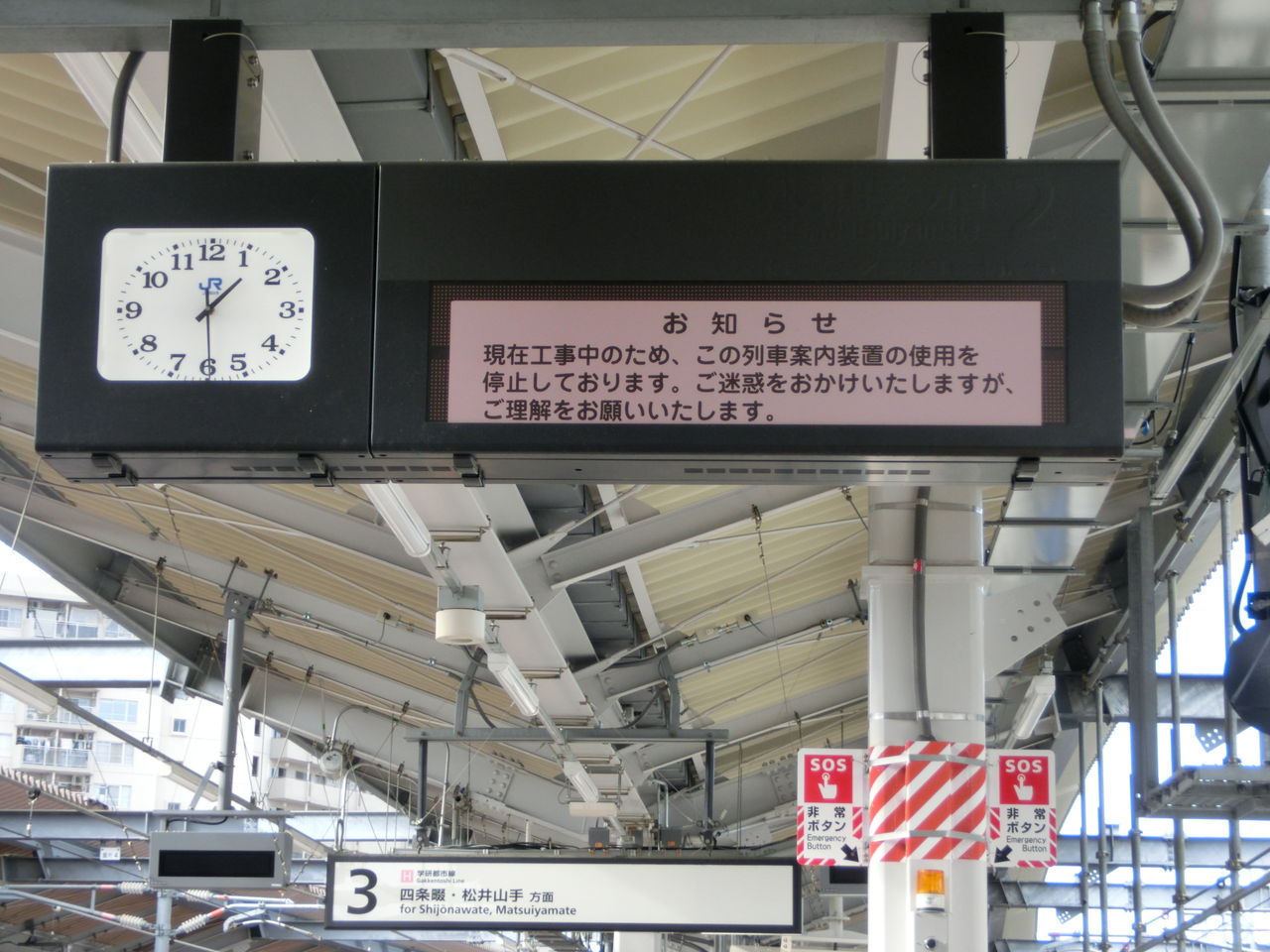 2018年5月20日には、2番のりばの反対側(3番のりば)が 学研都市線 上りホームとして使用開始され、2番のりばは再度使用停止となりました。