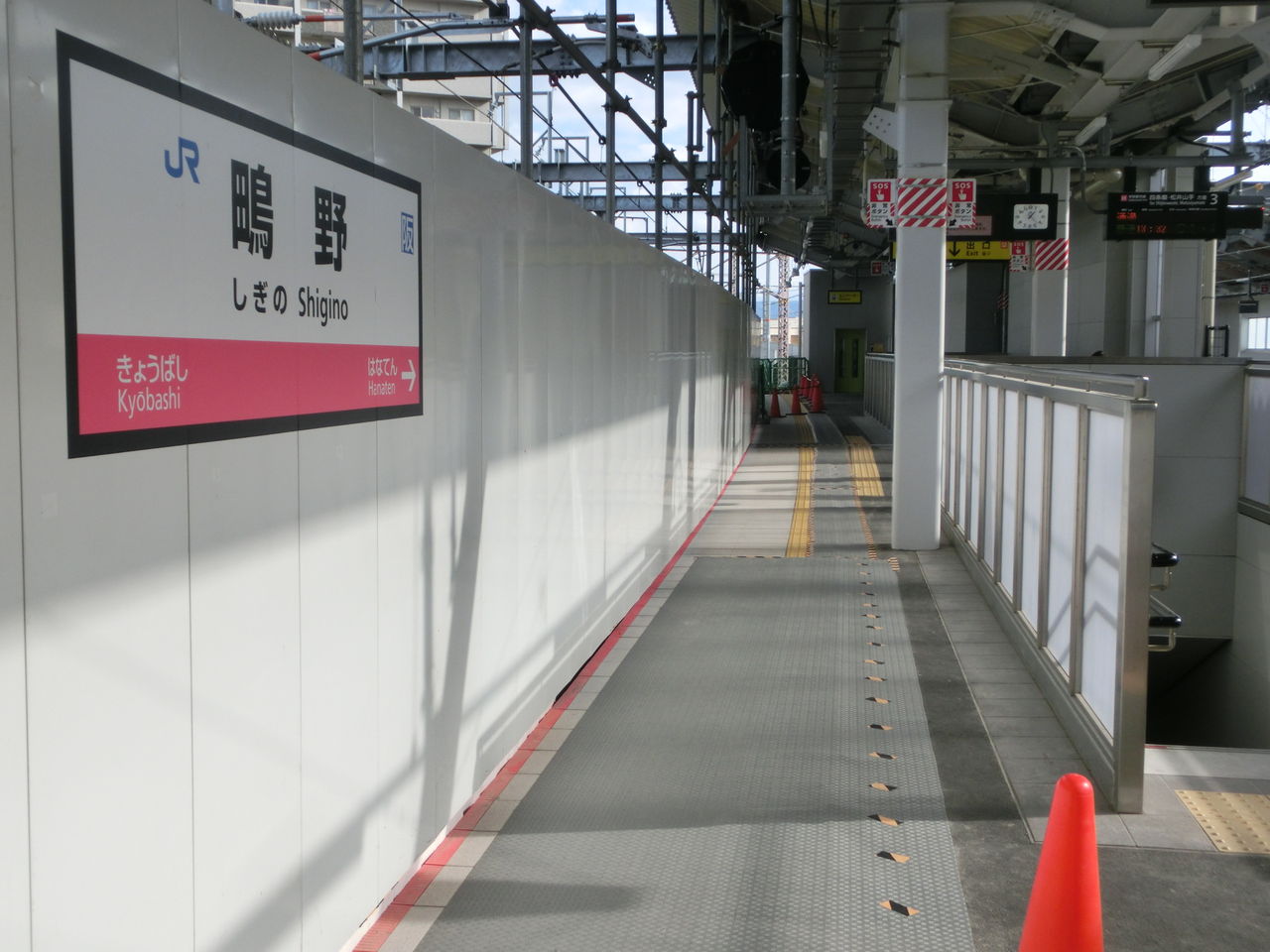 今回、2018年12月8日に 鴫野駅を訪れ、1番のりばの改装工事の様子を撮影してきました。