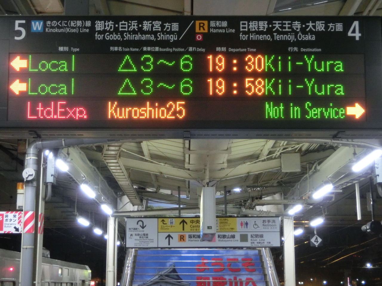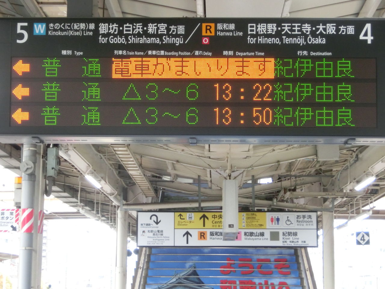 和歌山駅に到着後、きのくに線ホームである4・5番のりばへ行ってみると・・・