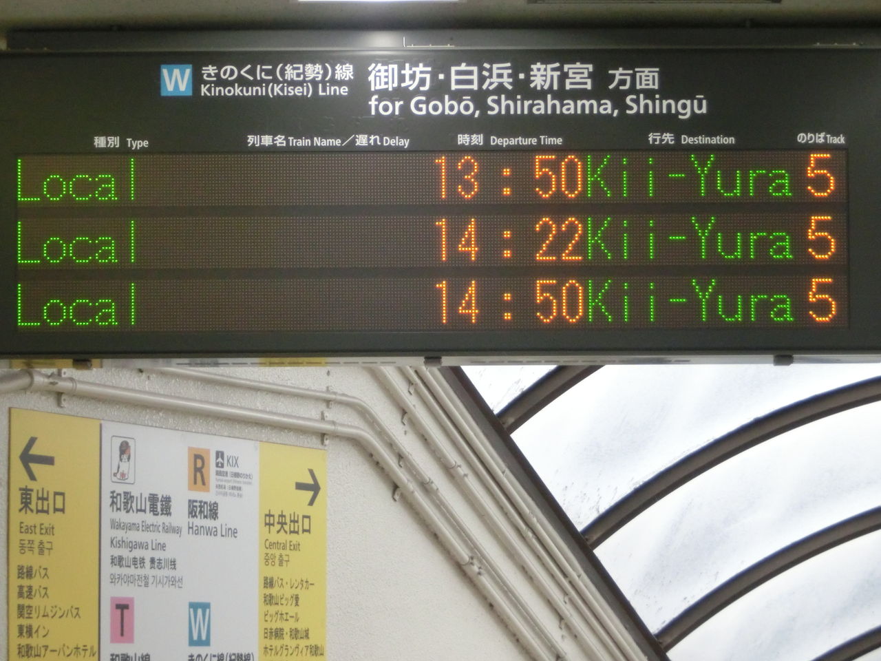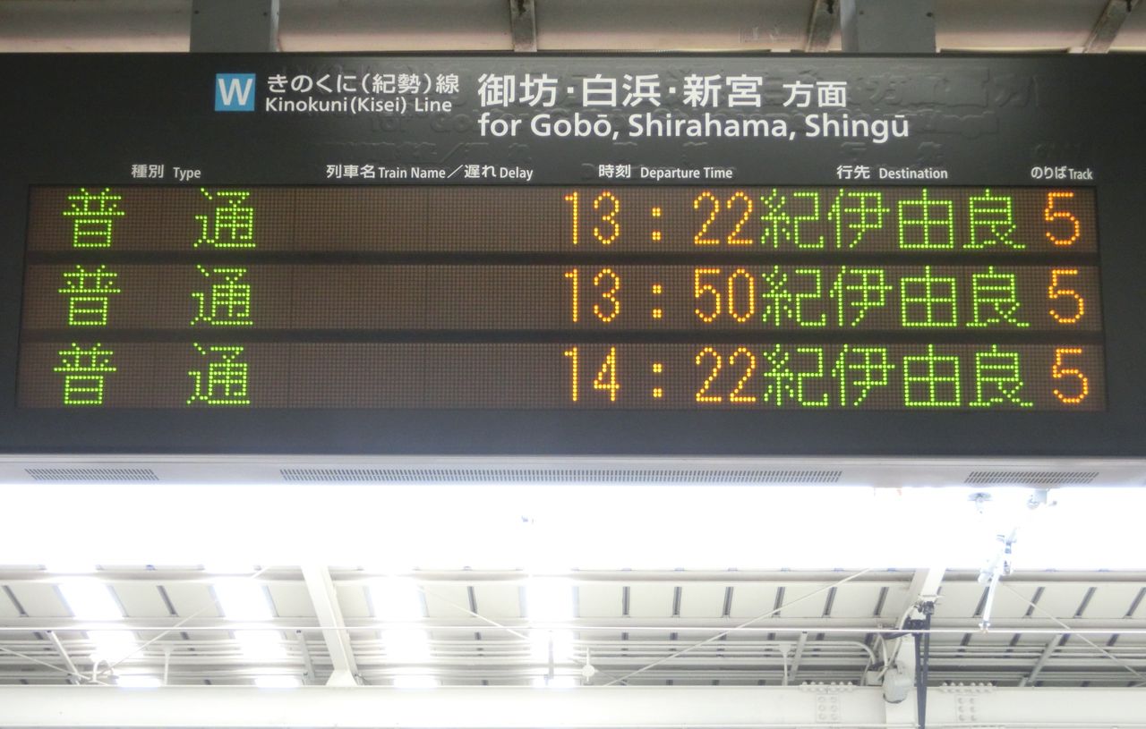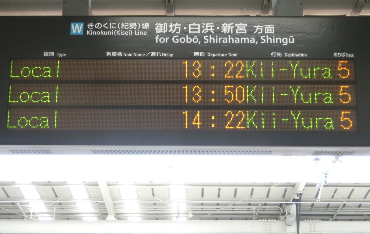 中央改札口に設置されている発車標も、紀伊由良行きが並んでいます。