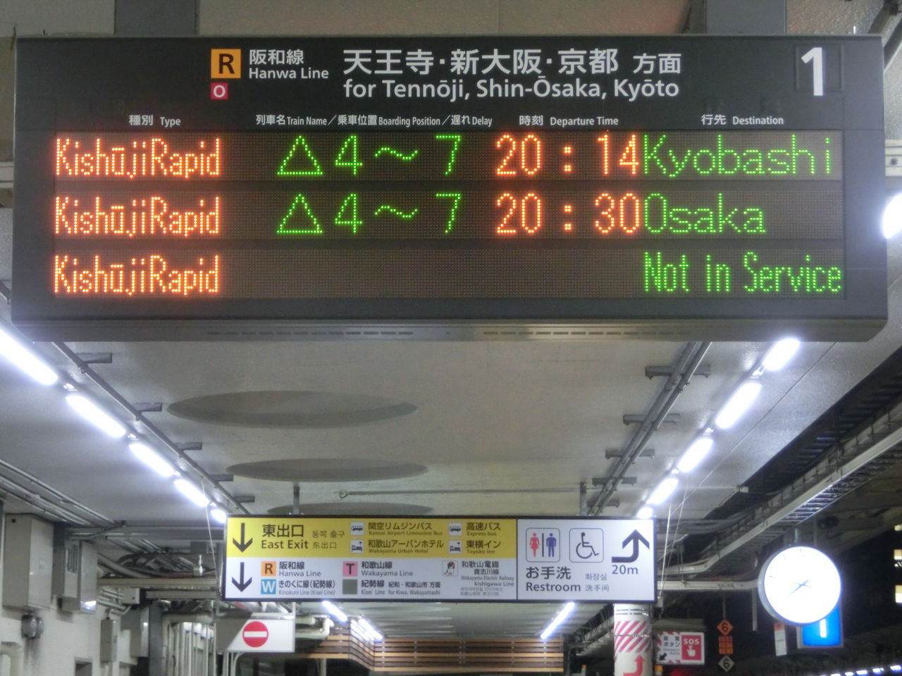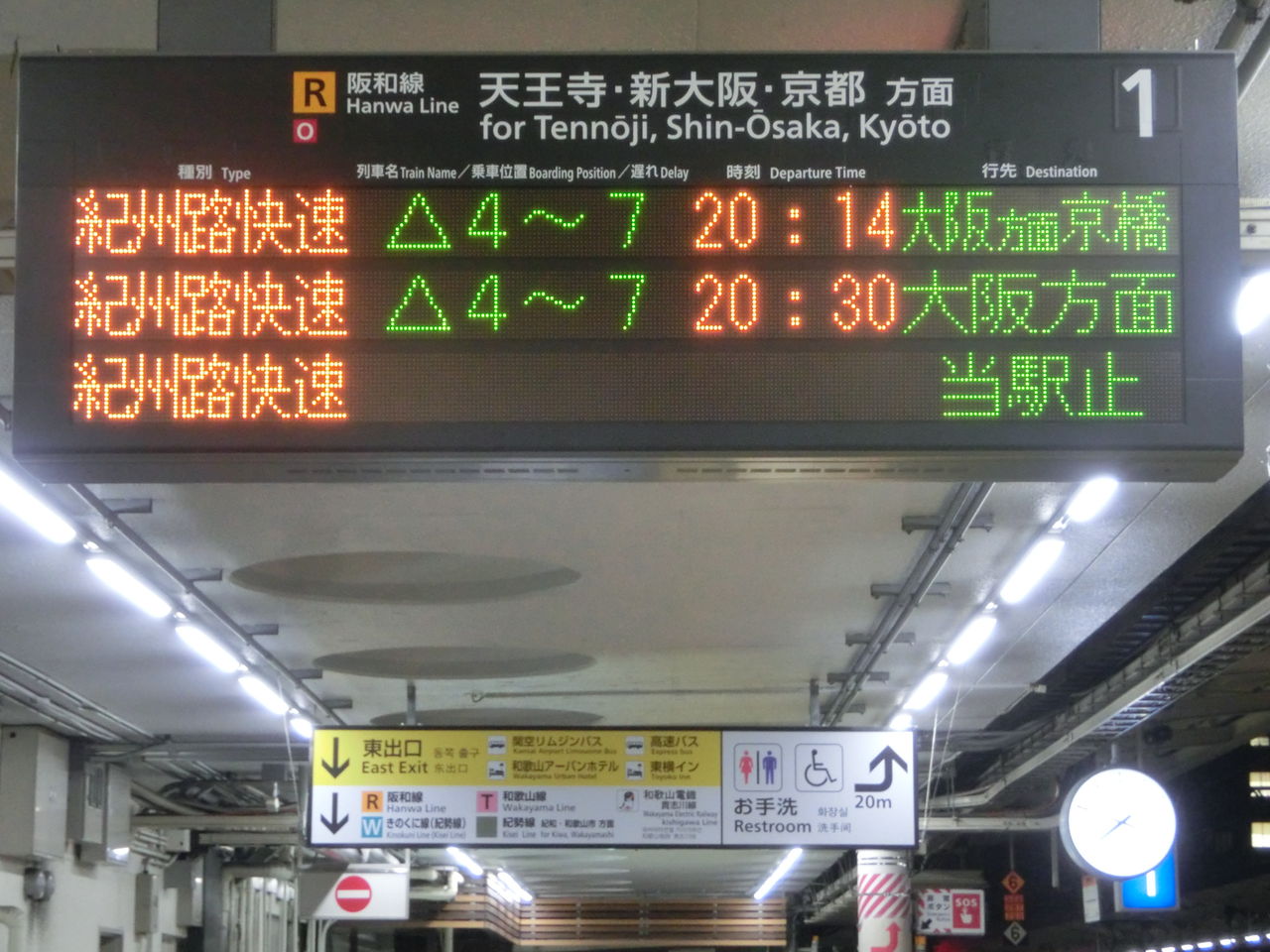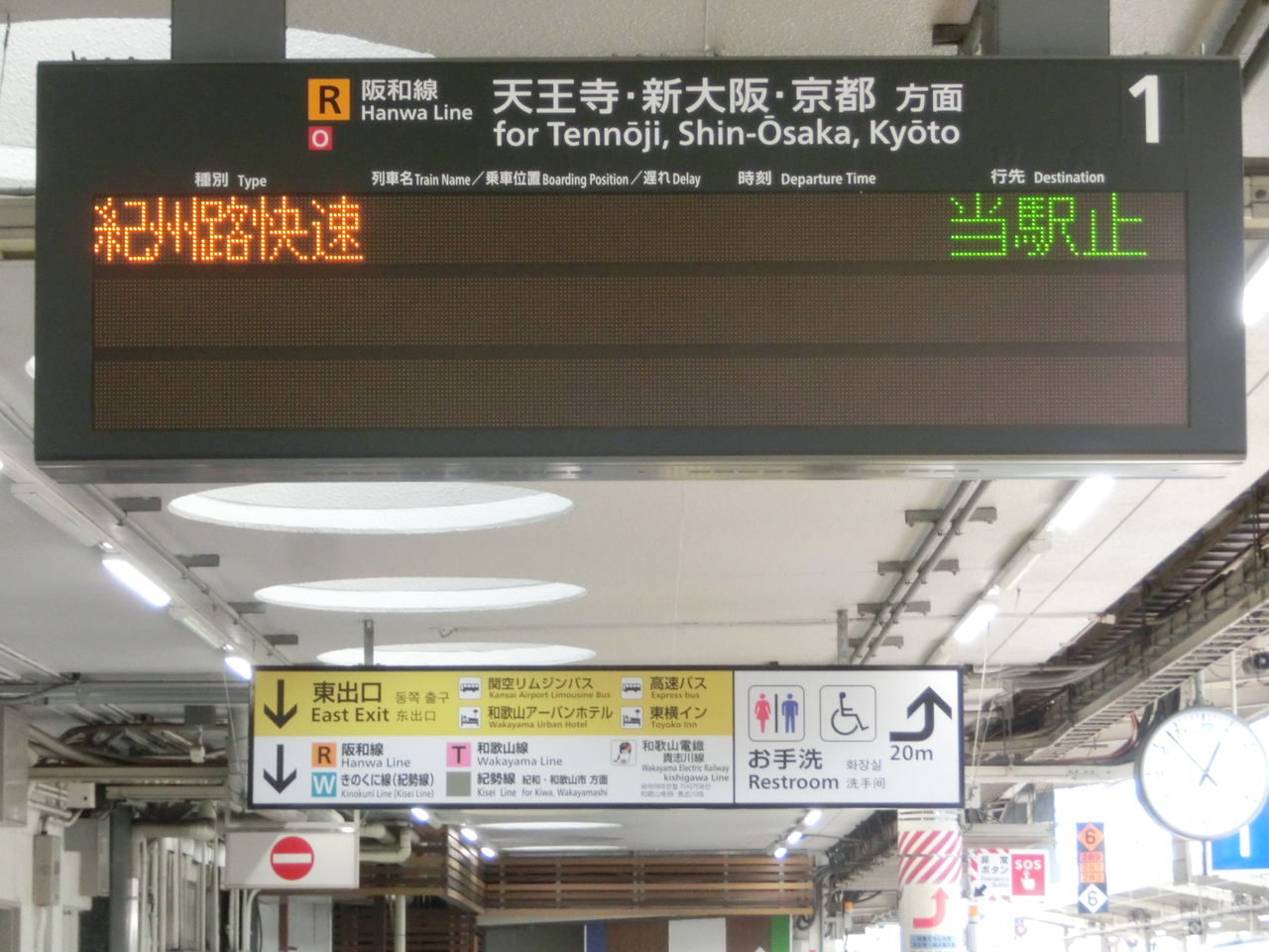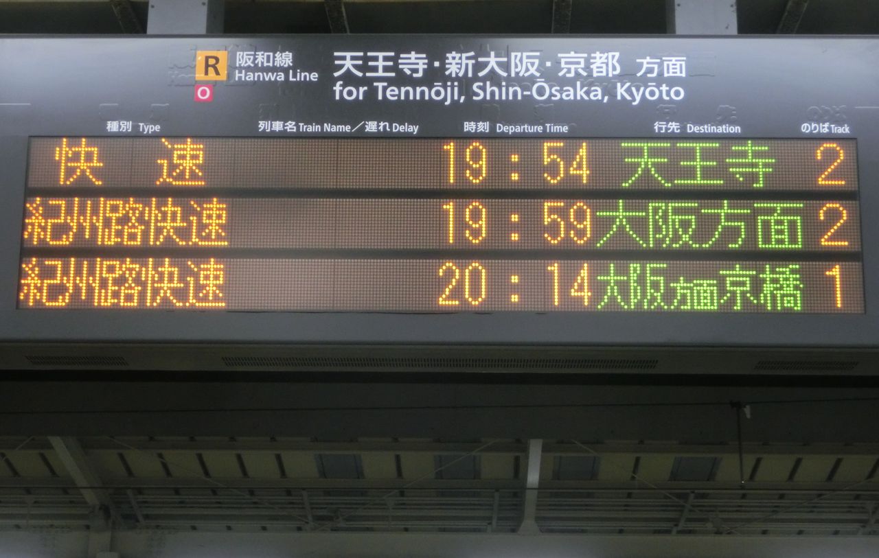 ついでに、中央改札口の阪和線の発車標も撮影。