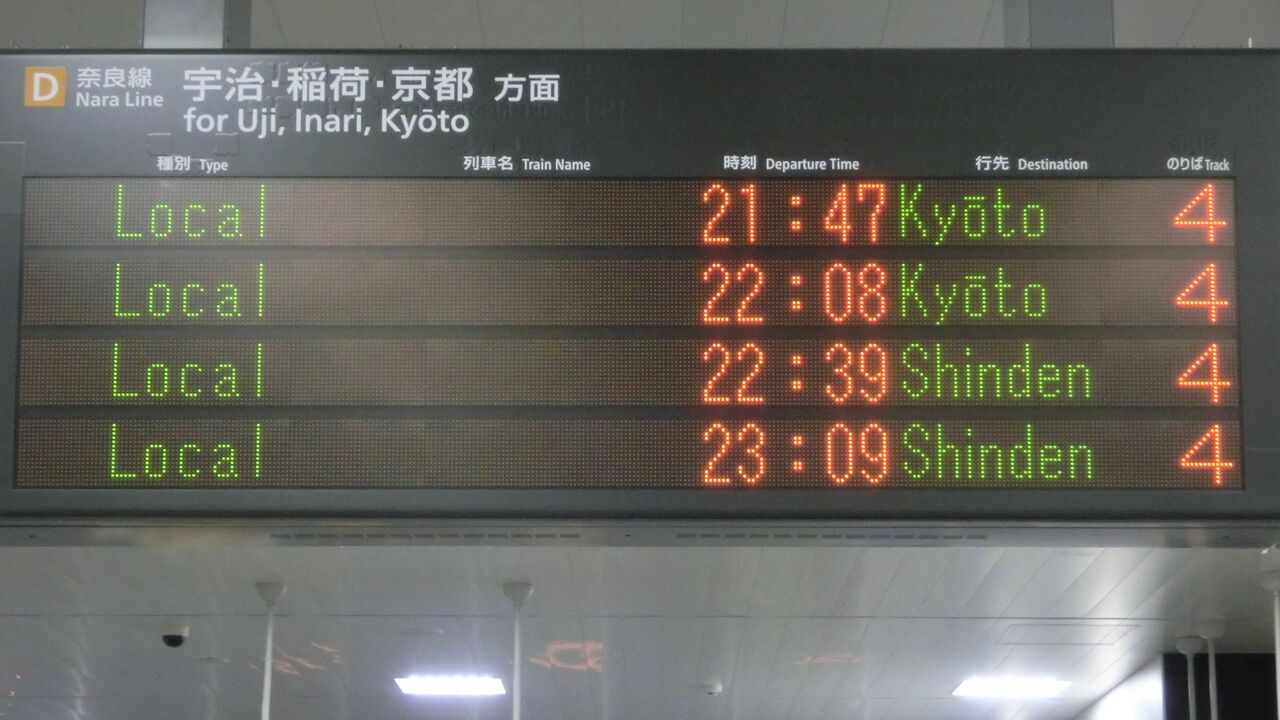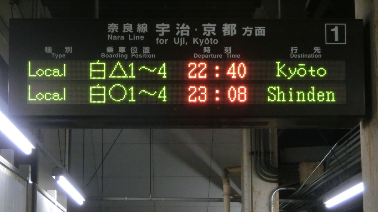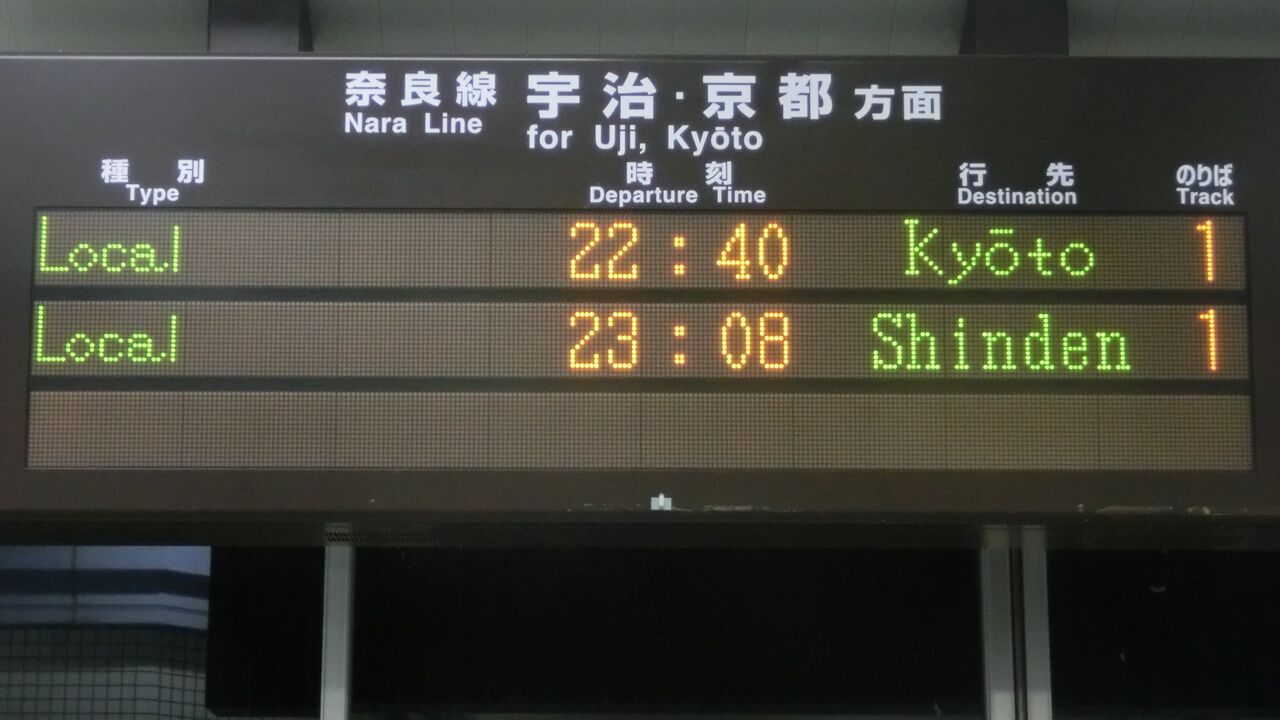(奈良22:08発 京都行き、京都22:44発 奈良行き)