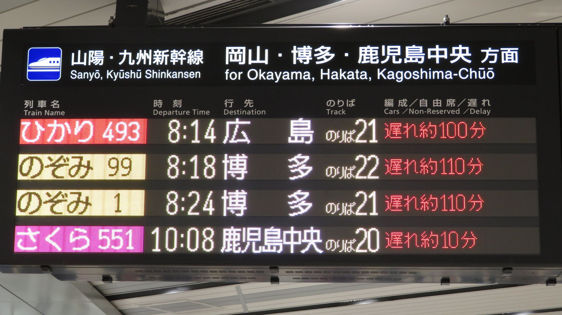 こちらは、新大阪駅にあるフルカラーLEDの発車標です。