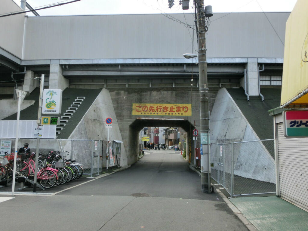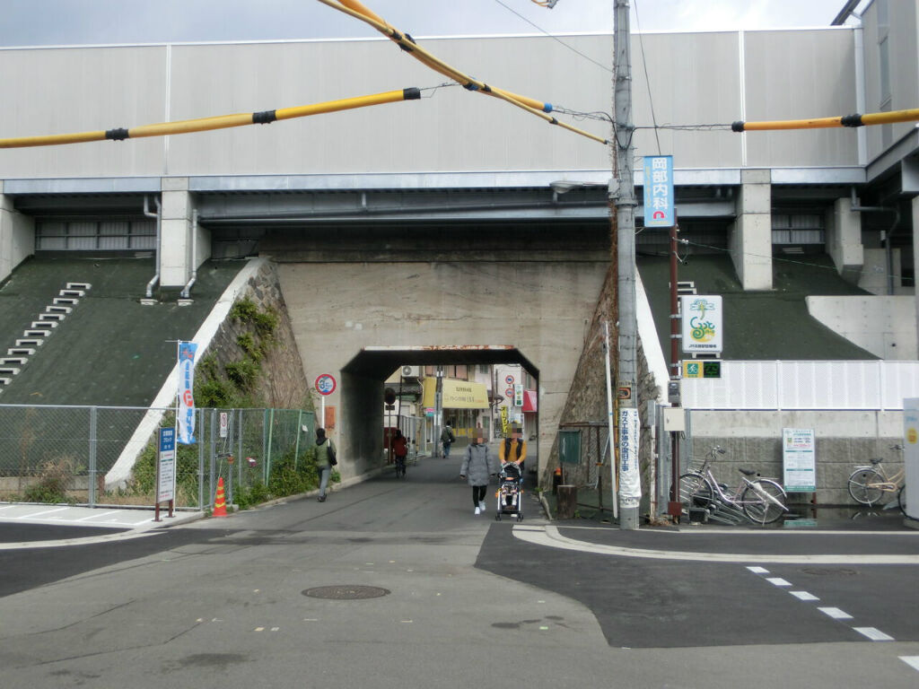 西口駅舎の左横に、おおさか東線の下をくぐるトンネルがあります。