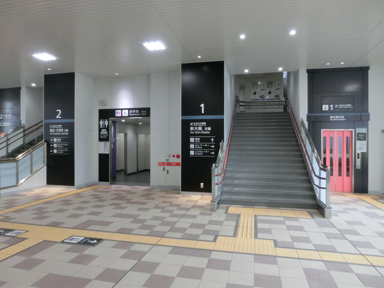 上が1番のりば(新大阪方面)、下が2番のりば(久宝寺方面)です。