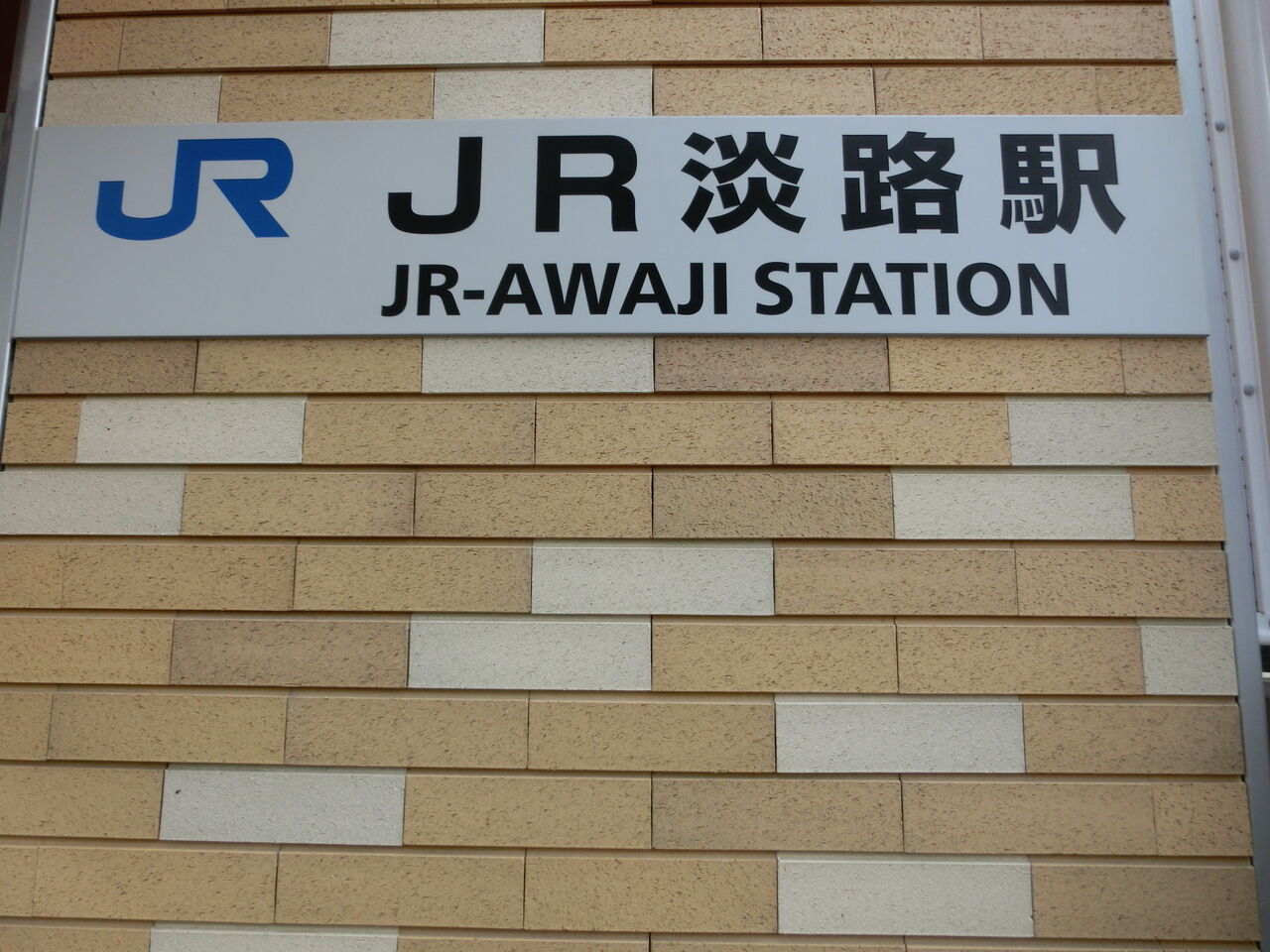 JR淡路駅の駅名標。