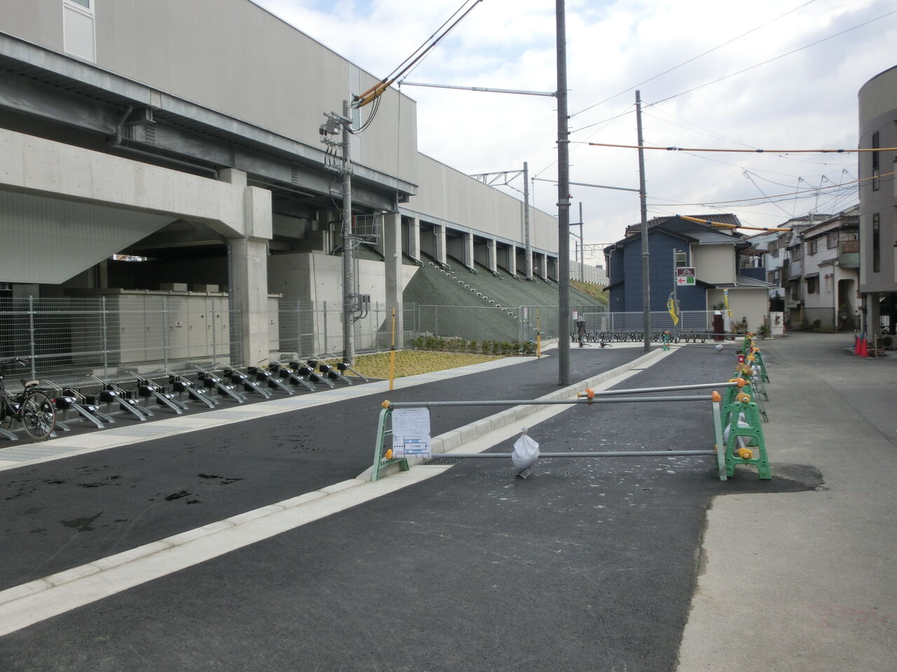 駅舎に沿って、駐輪場が整備されました。