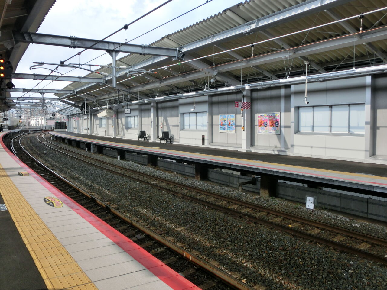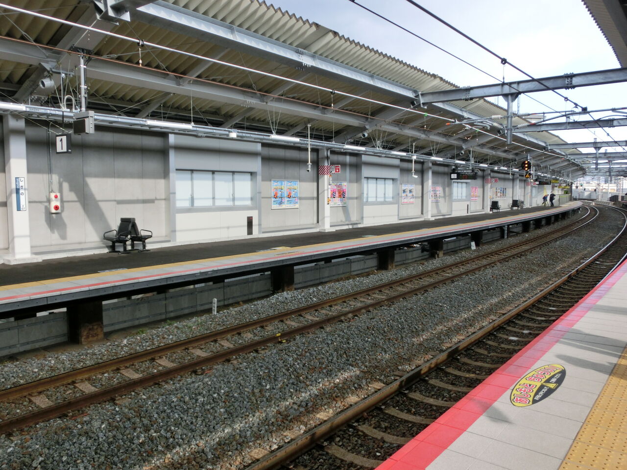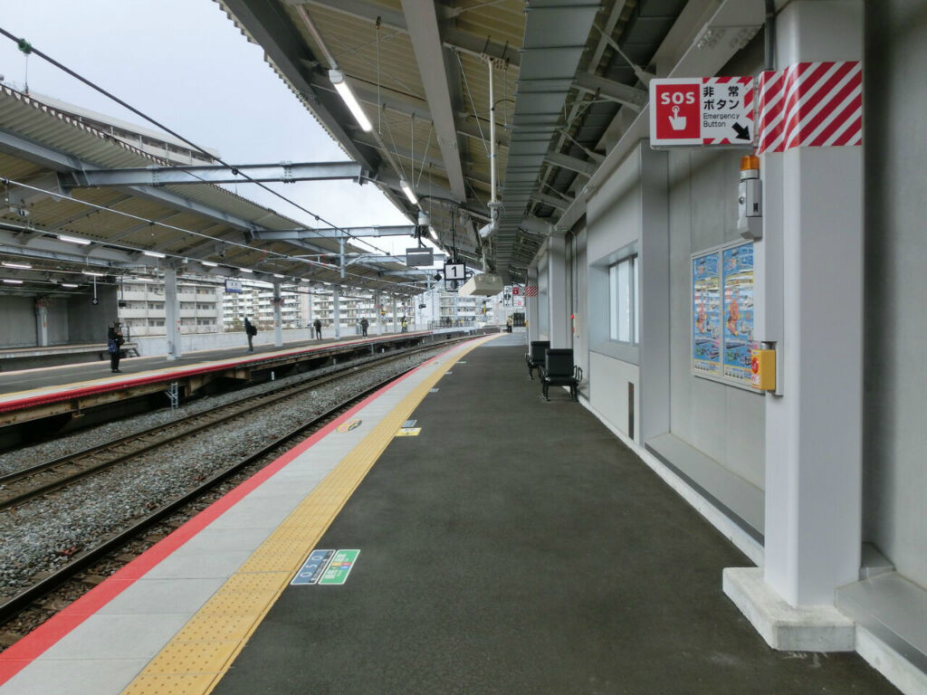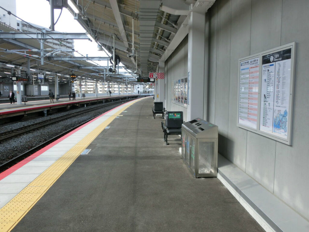ホームの有効長は8両分ありますが、1番のりばには6両編成の普通電車しか停車しません。
