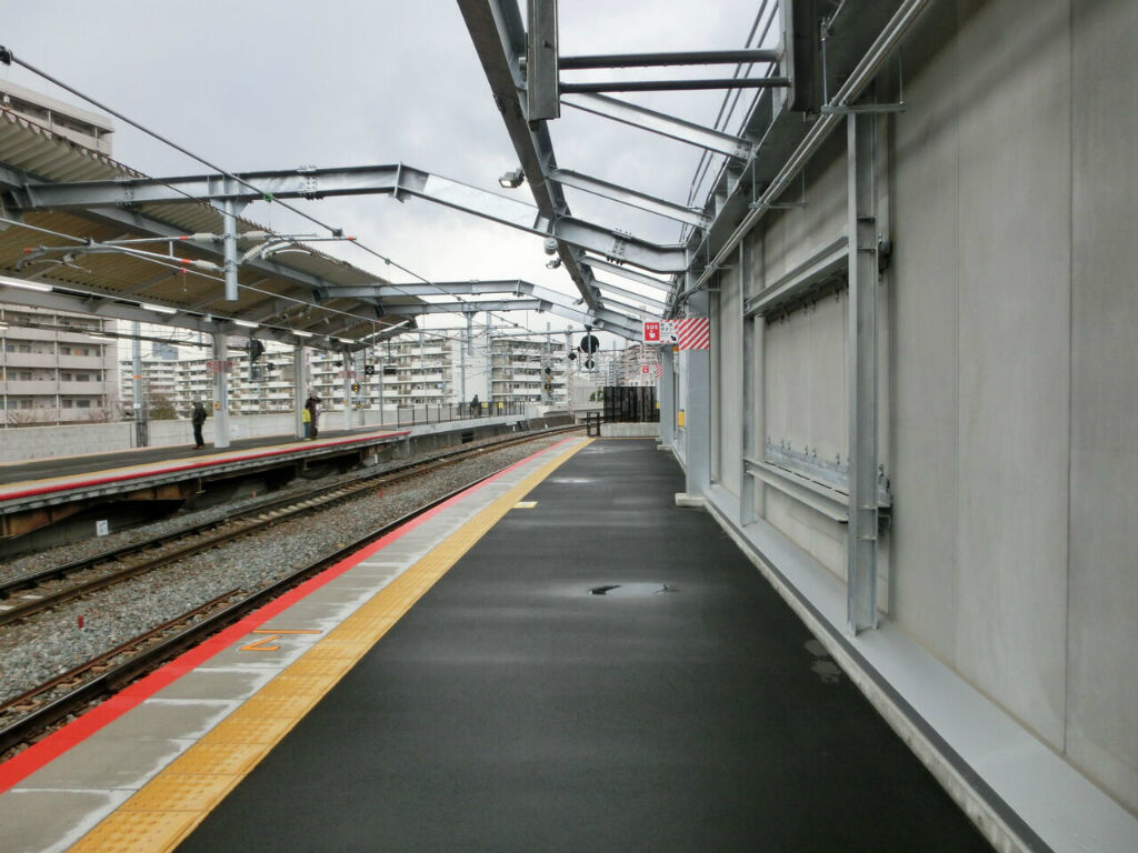 1番のりばの様子を紹介する前に、まずは 鴫野駅で行われた改良工事を振り返っておきましょう。