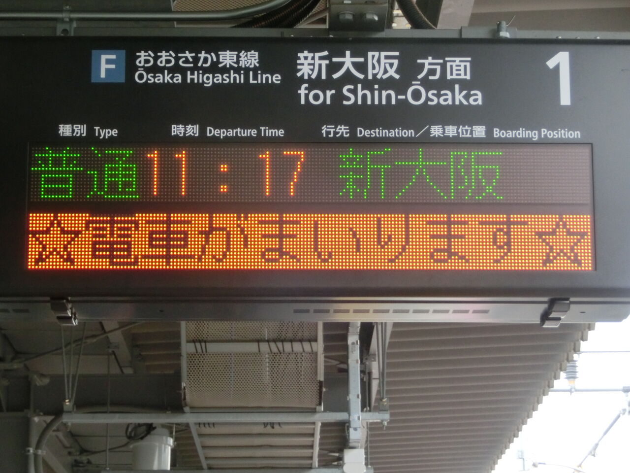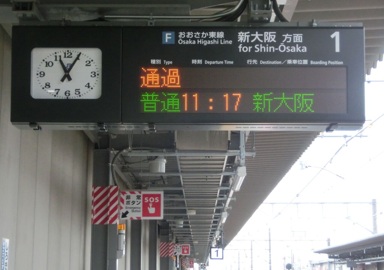 まずは、1番のりば(新大阪方面ホーム)から。