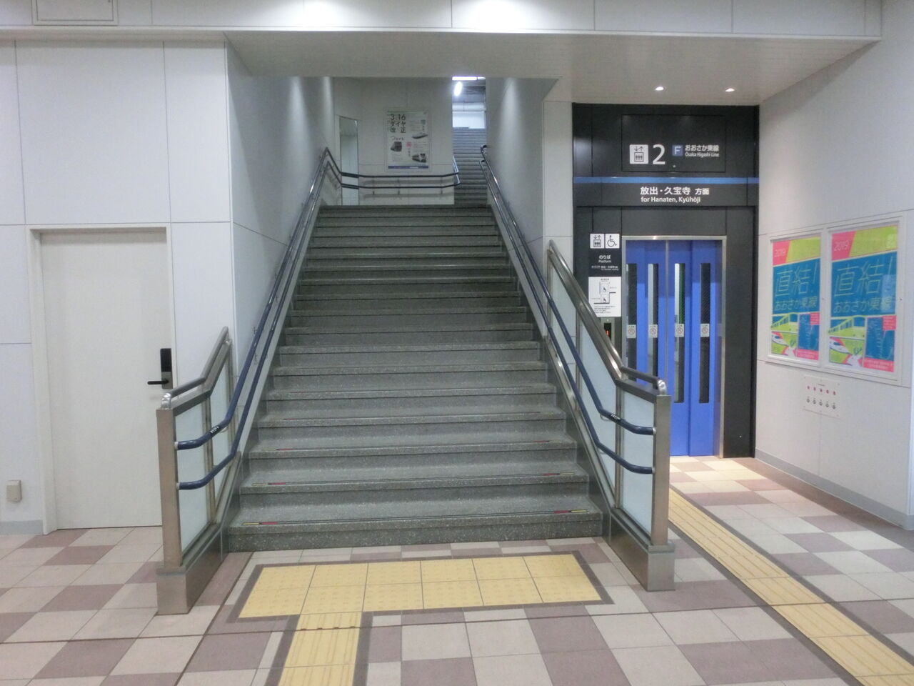 2番のりばのエスカレーター・階段・エレベーターは こんな感じ。