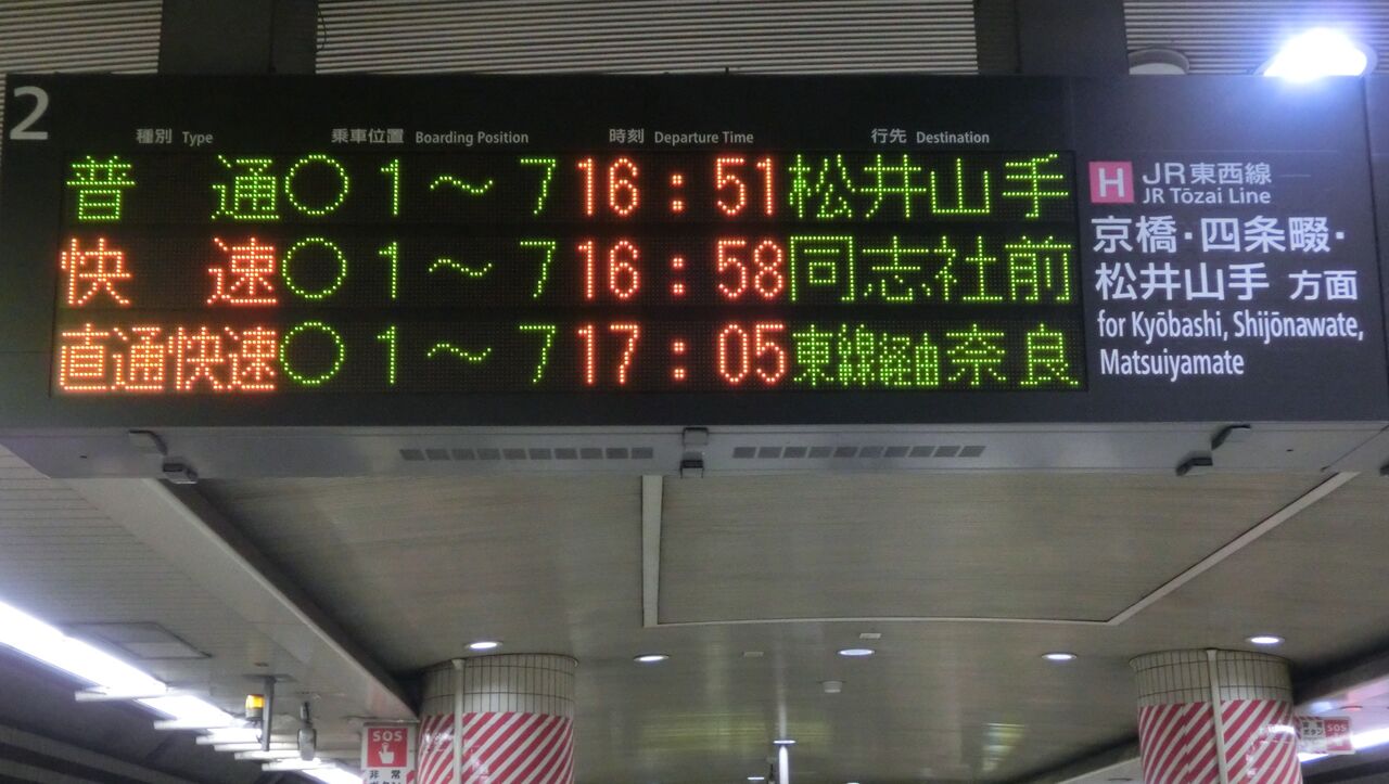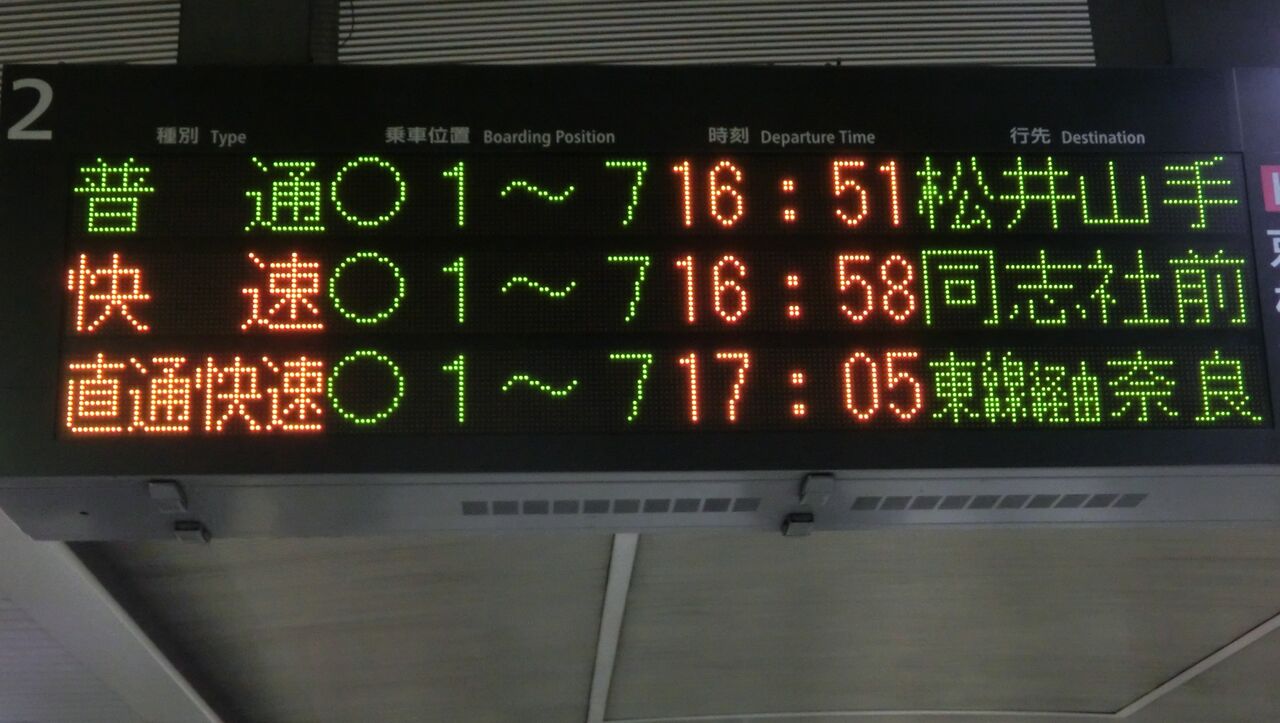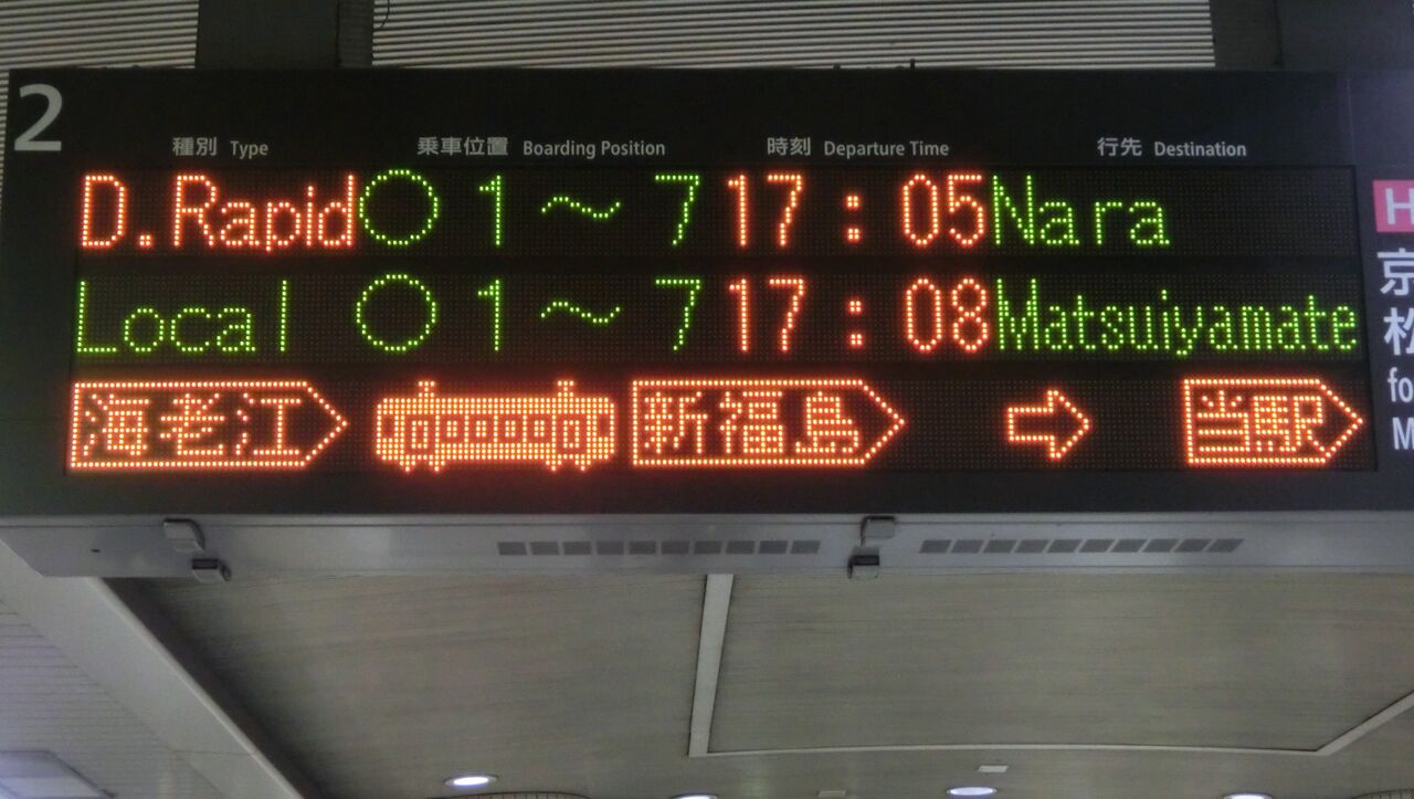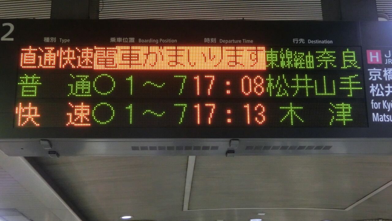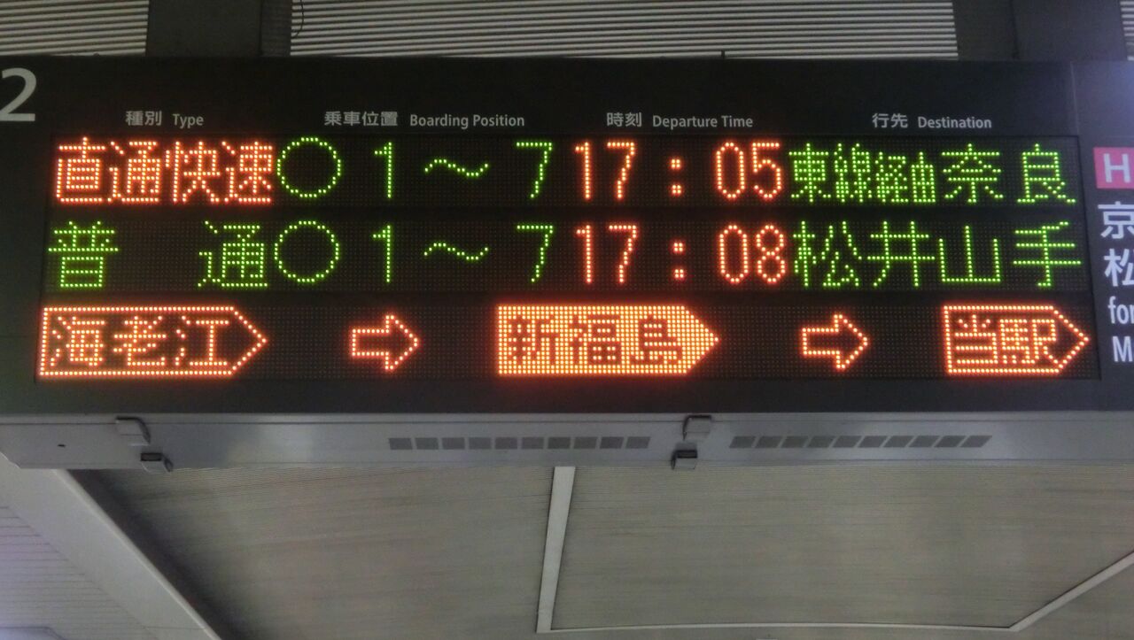 続いて、直通快速 奈良行きの表示をご紹介。