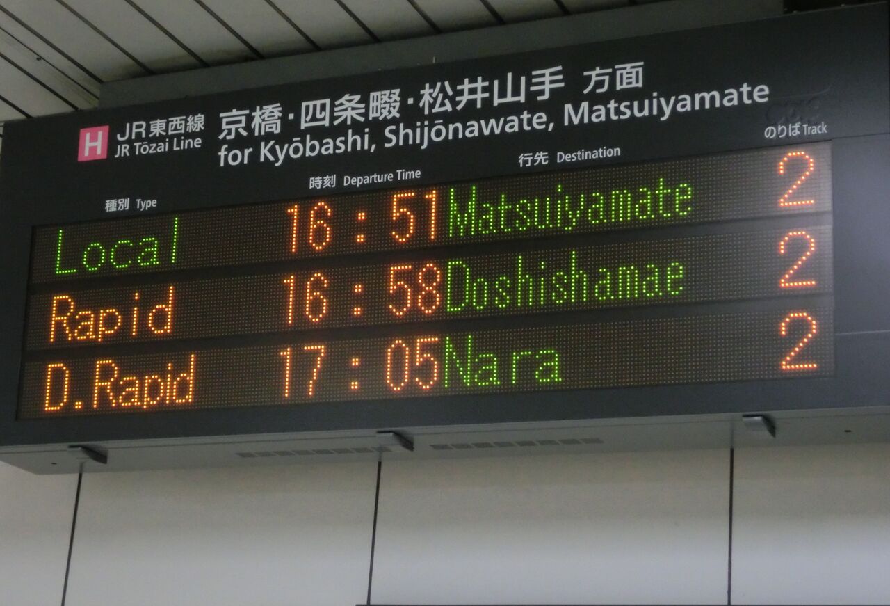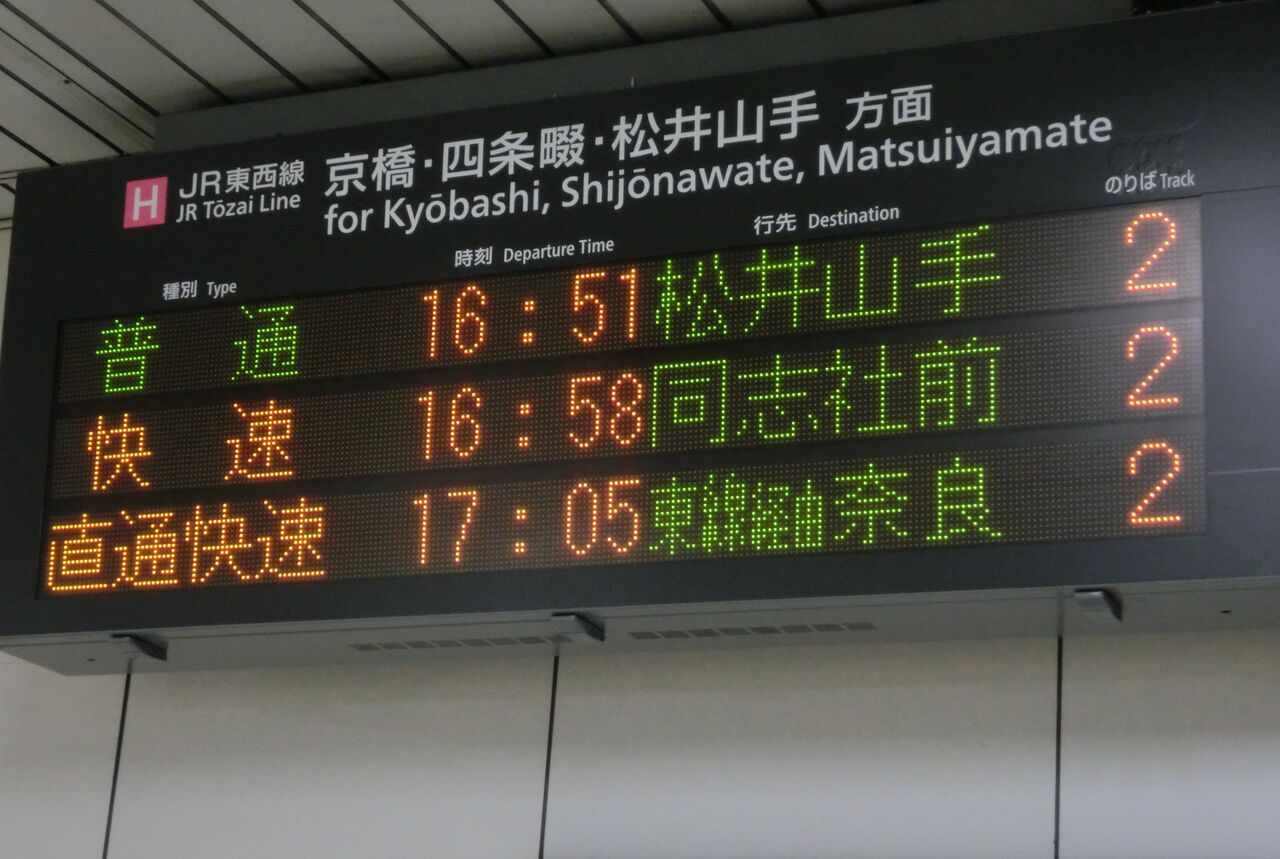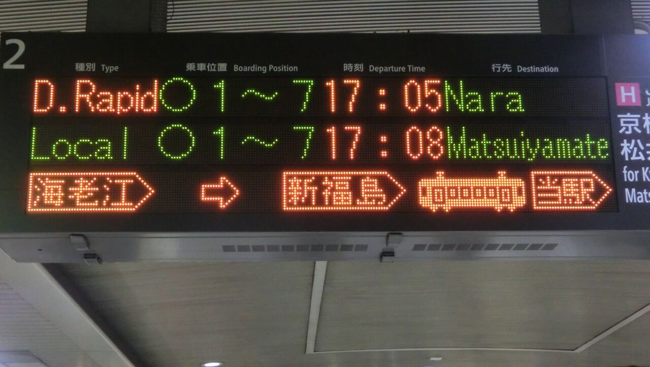 以上、北新地駅で撮影した直通快速 尼崎行きと奈良行きの表示を紹介しました。