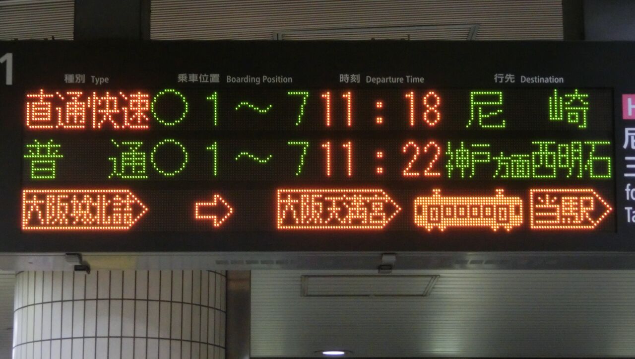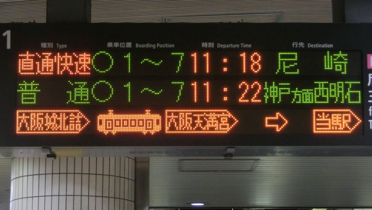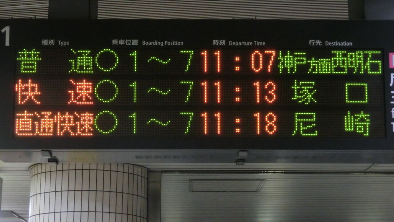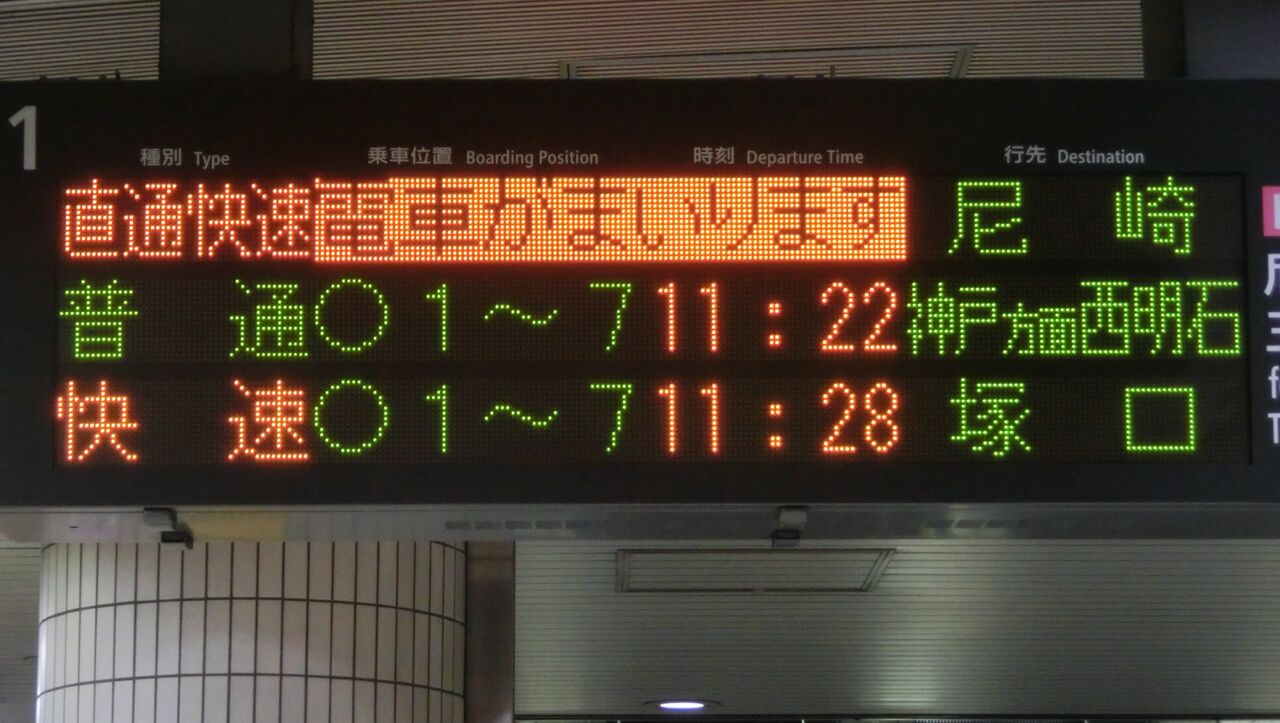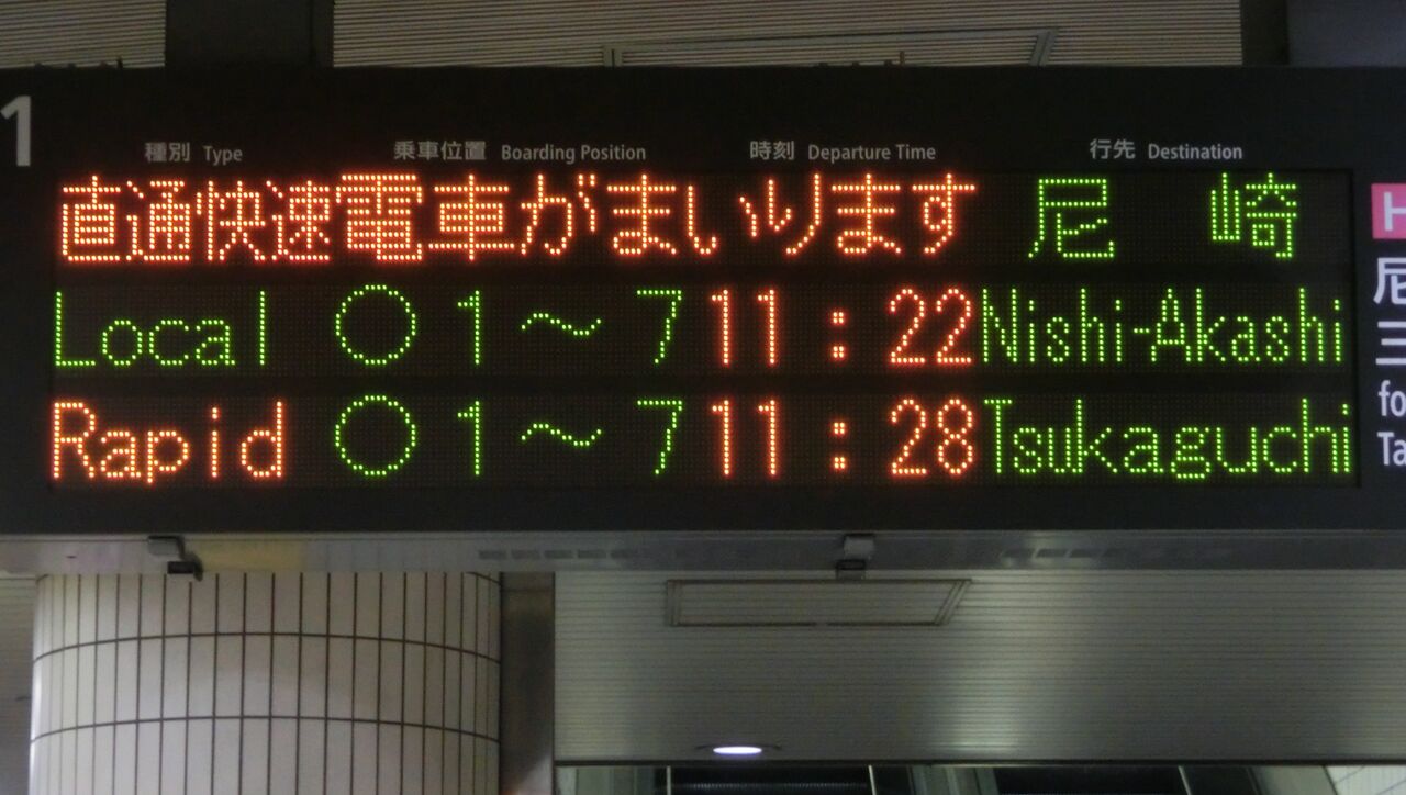まずは、尼崎行きの表示から見ていきましょう。