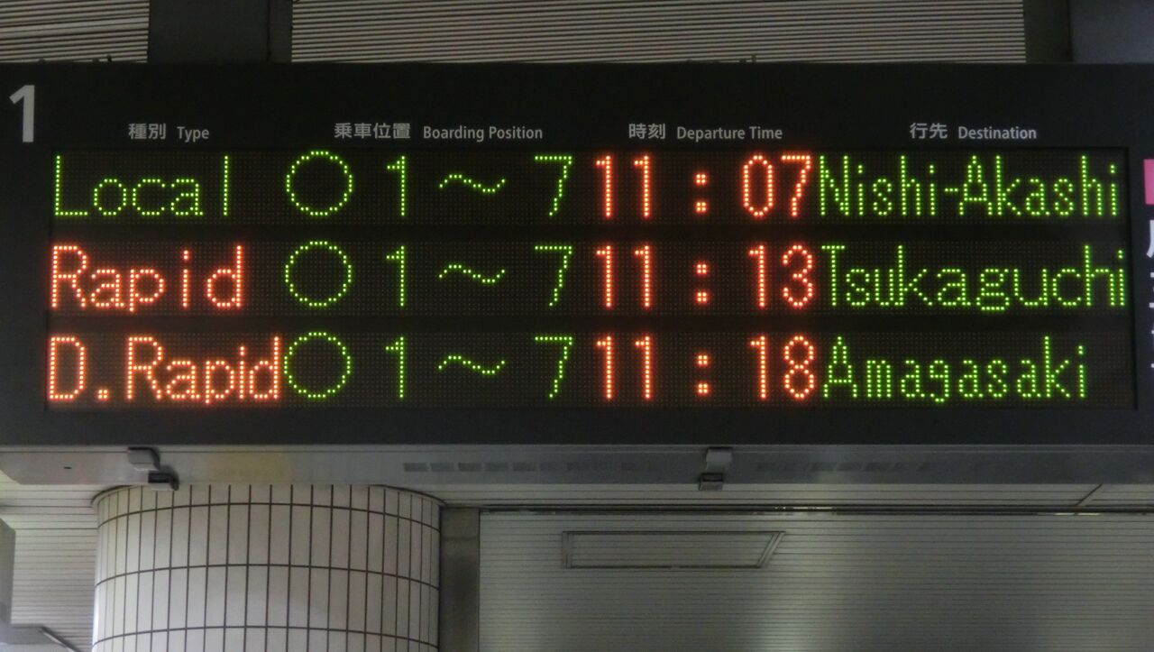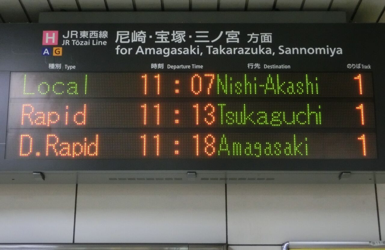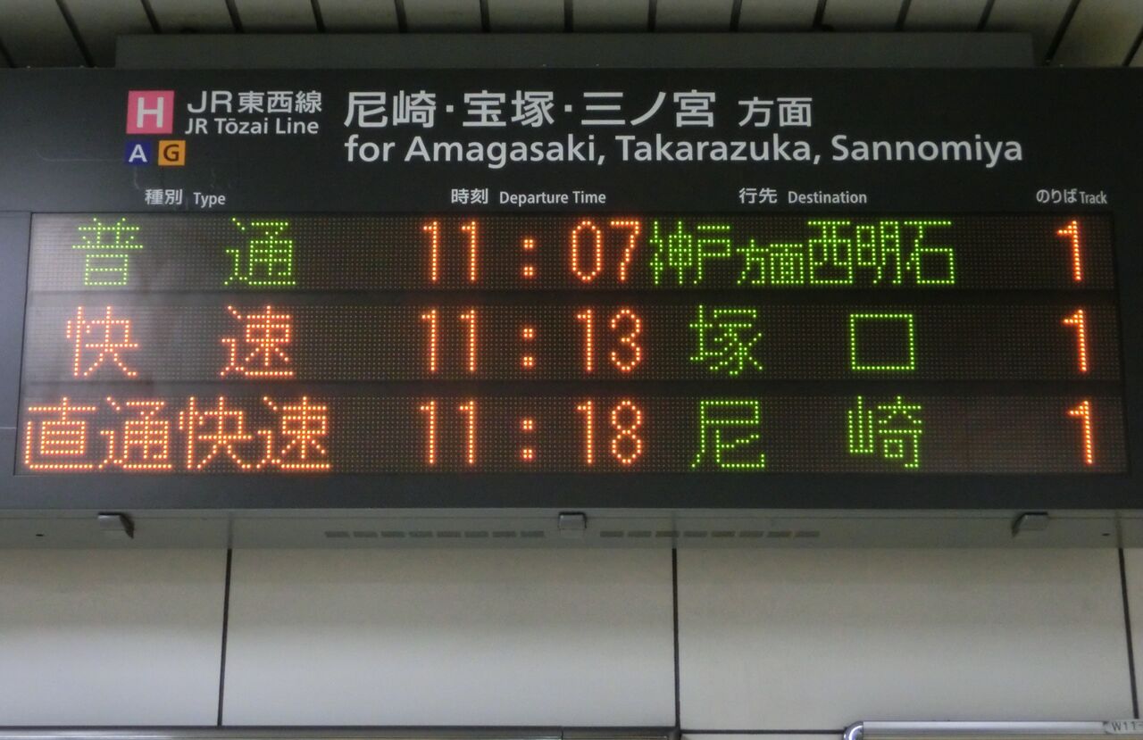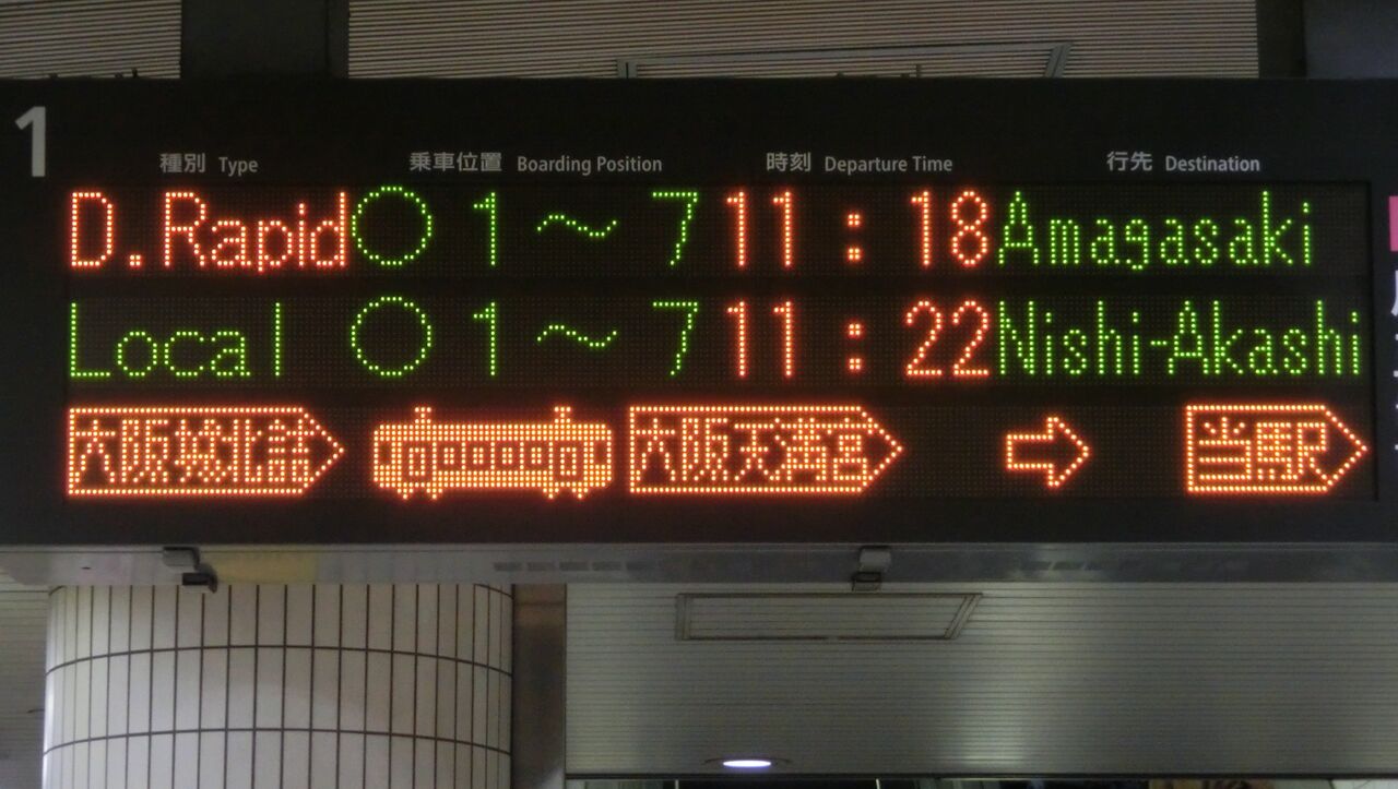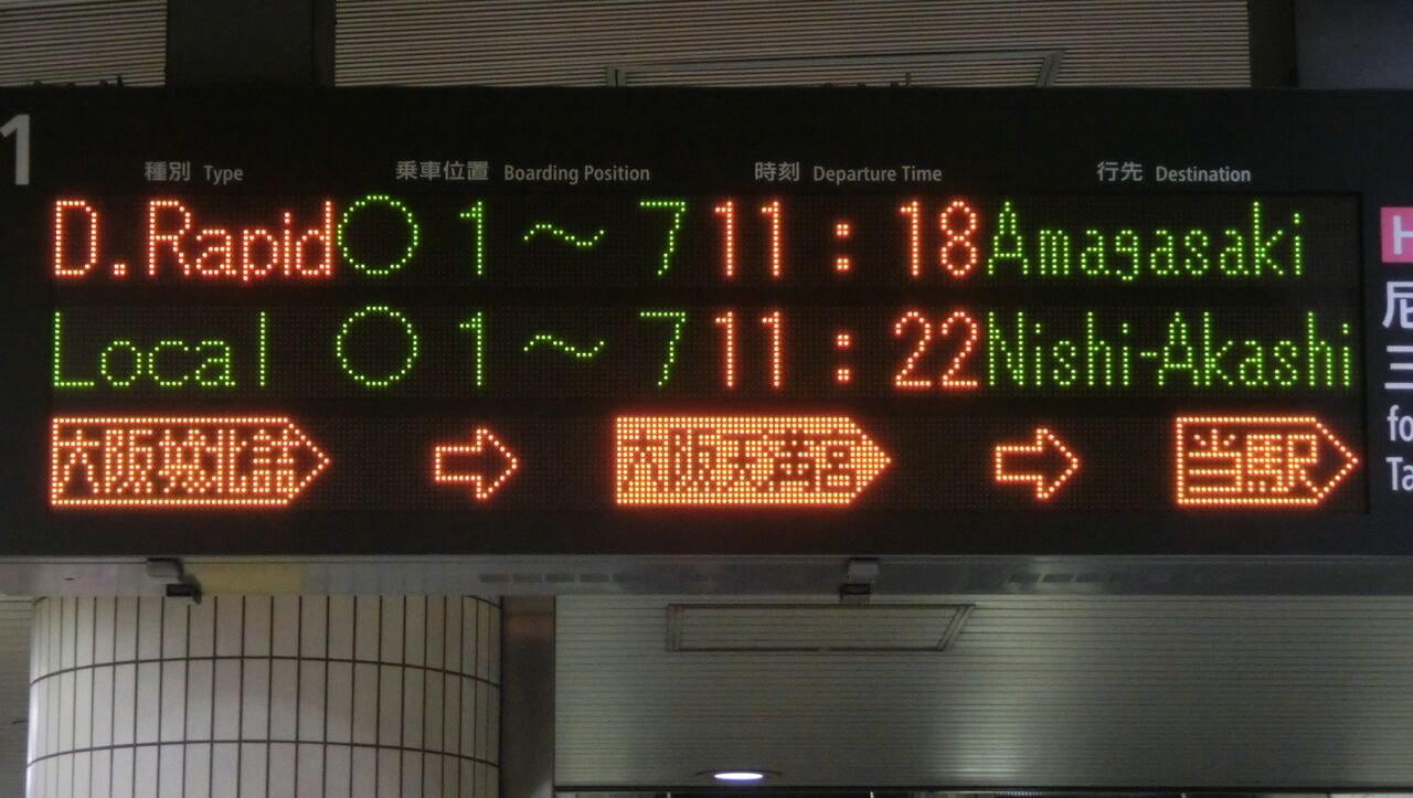 まずは、尼崎行きの表示から見ていきましょう。