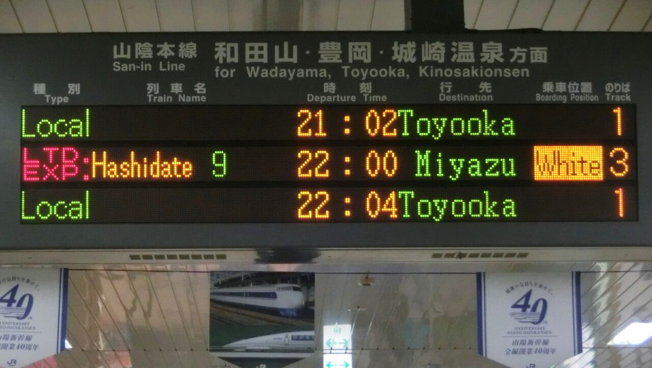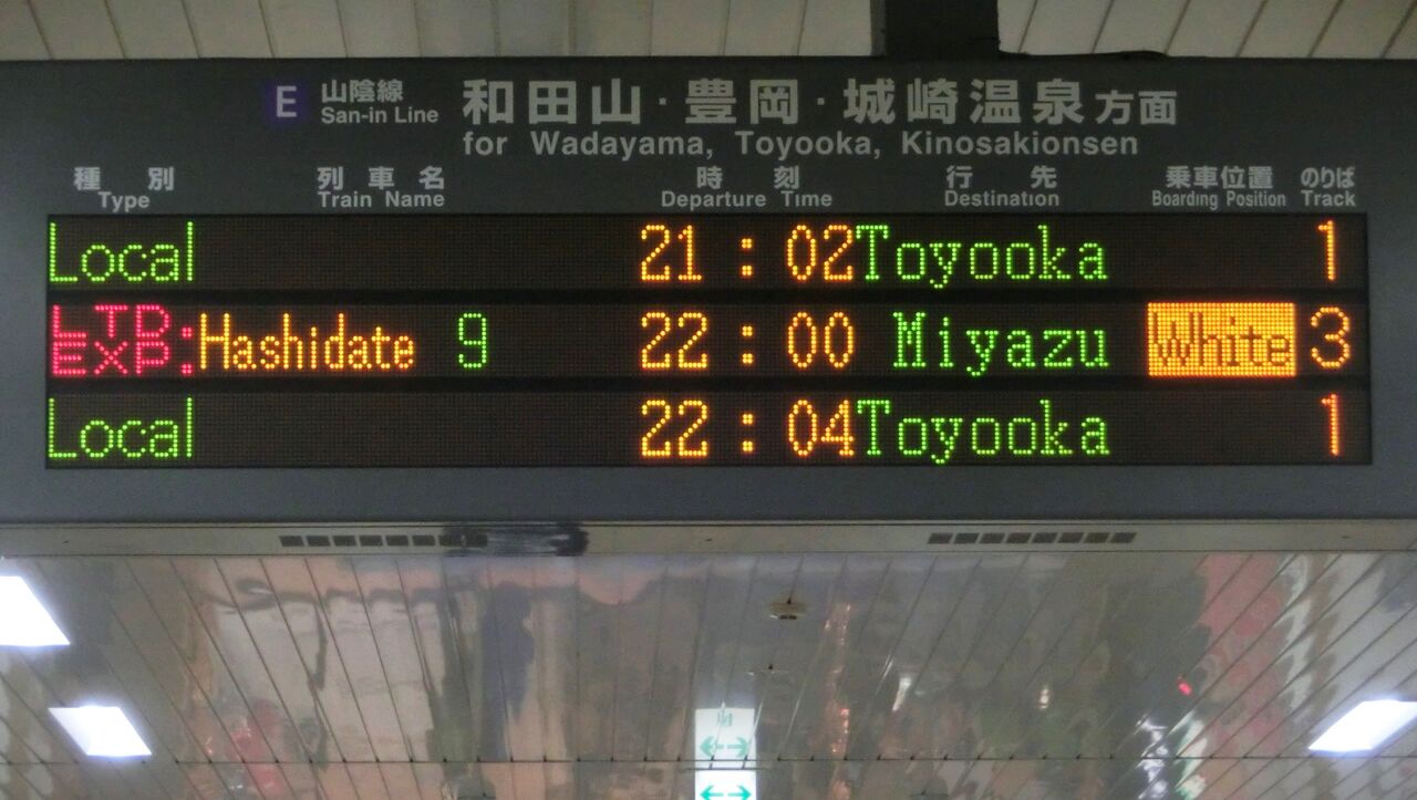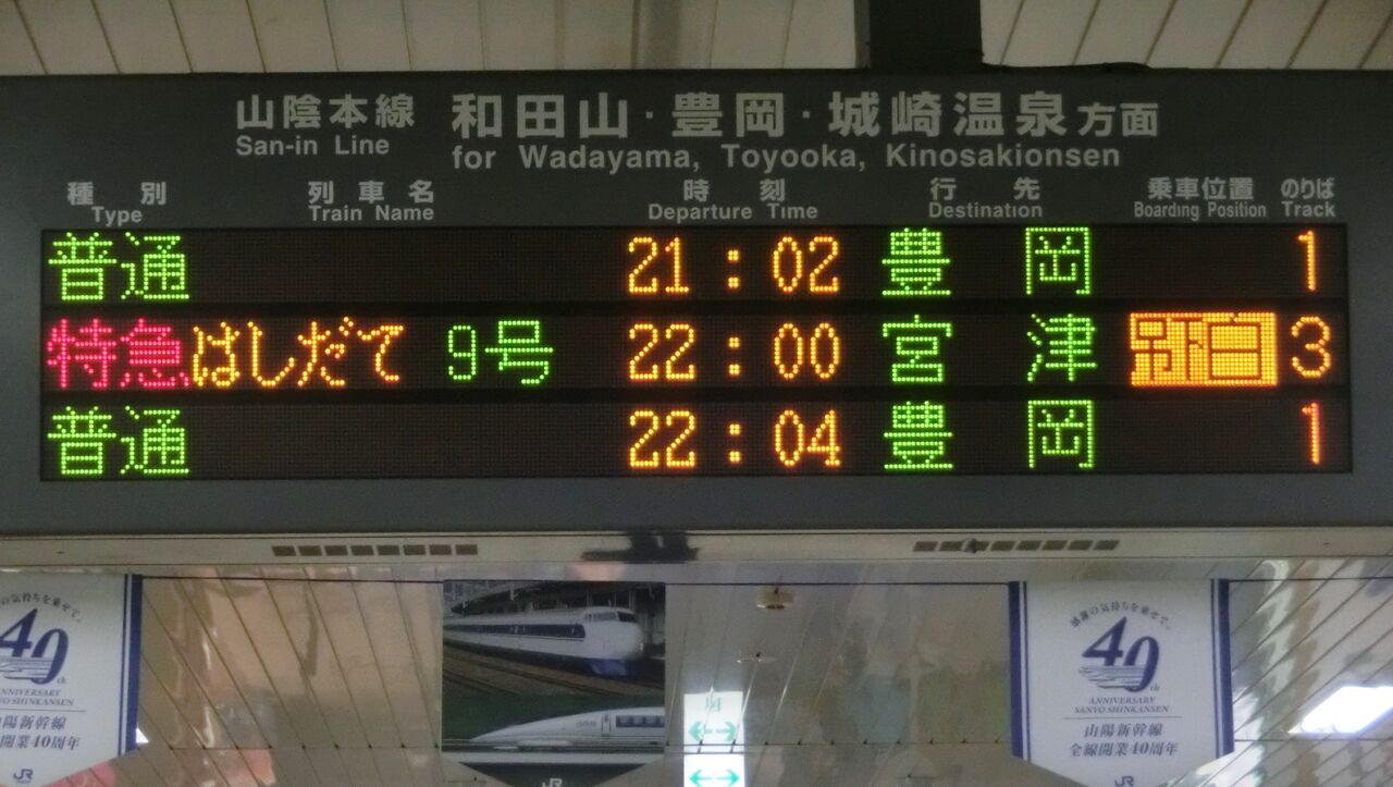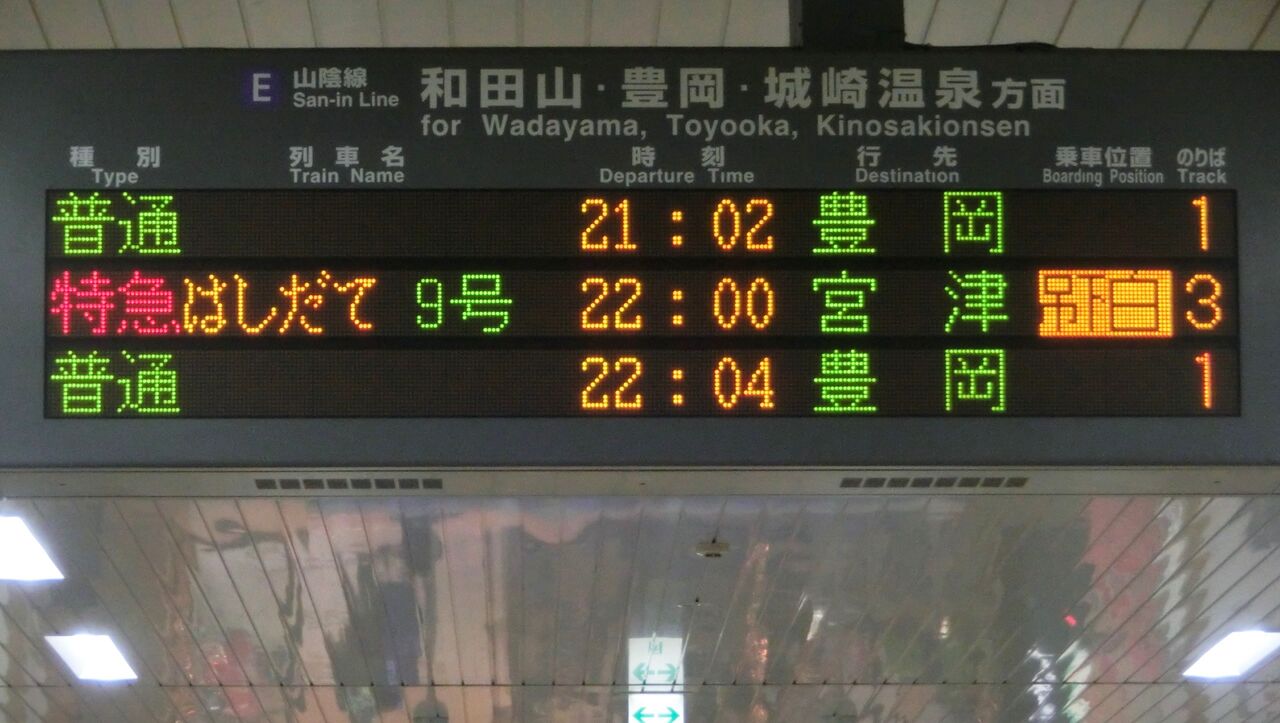 山陰本線下り 豊岡方面の発車標です。
