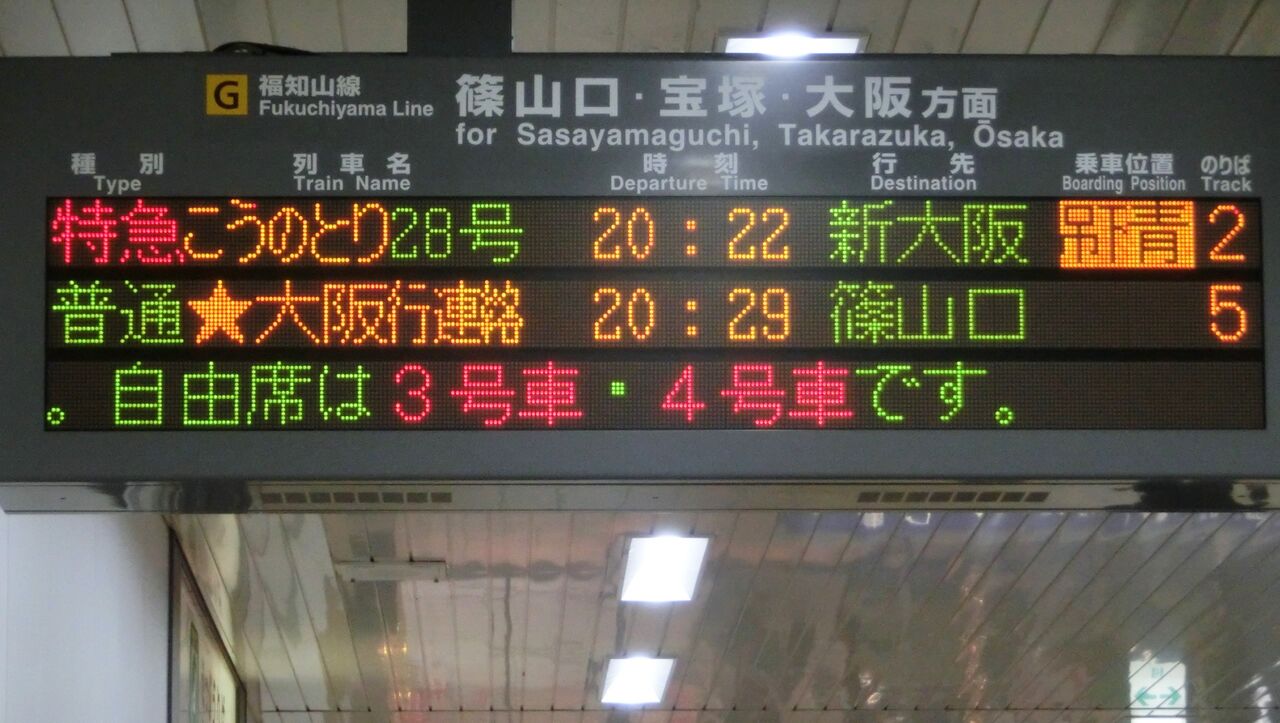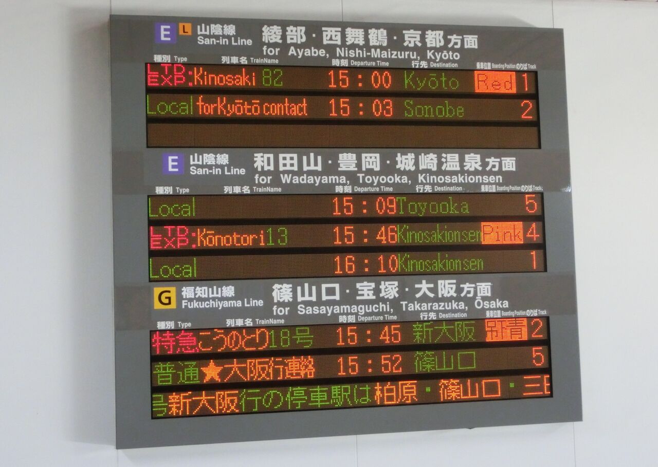 まずは、福知山線の発車標から。